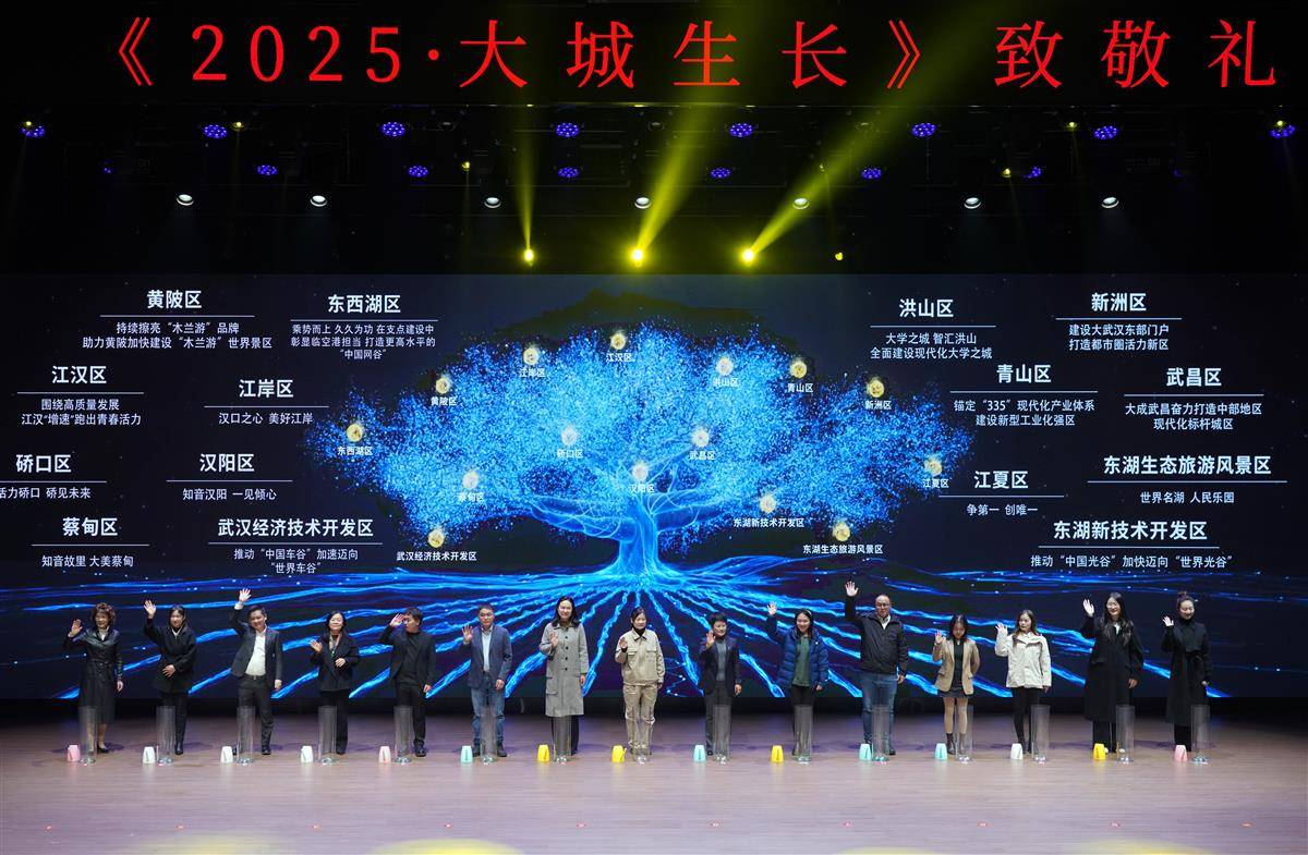 大城生长,致敬城市中每一位怀揣梦想、默默付出的奋斗者。华中科技大学党委书记刘波,中国科学院外籍院士、诺贝尔化学奖得主本杰明·李斯特,知名演员黄晓明,奥运冠军汪周雨等来自全国各界知名人士献上视频致敬,为武汉和武汉人民送上祝福。活动尾声,武汉各区代表共同点亮“城长”之光。