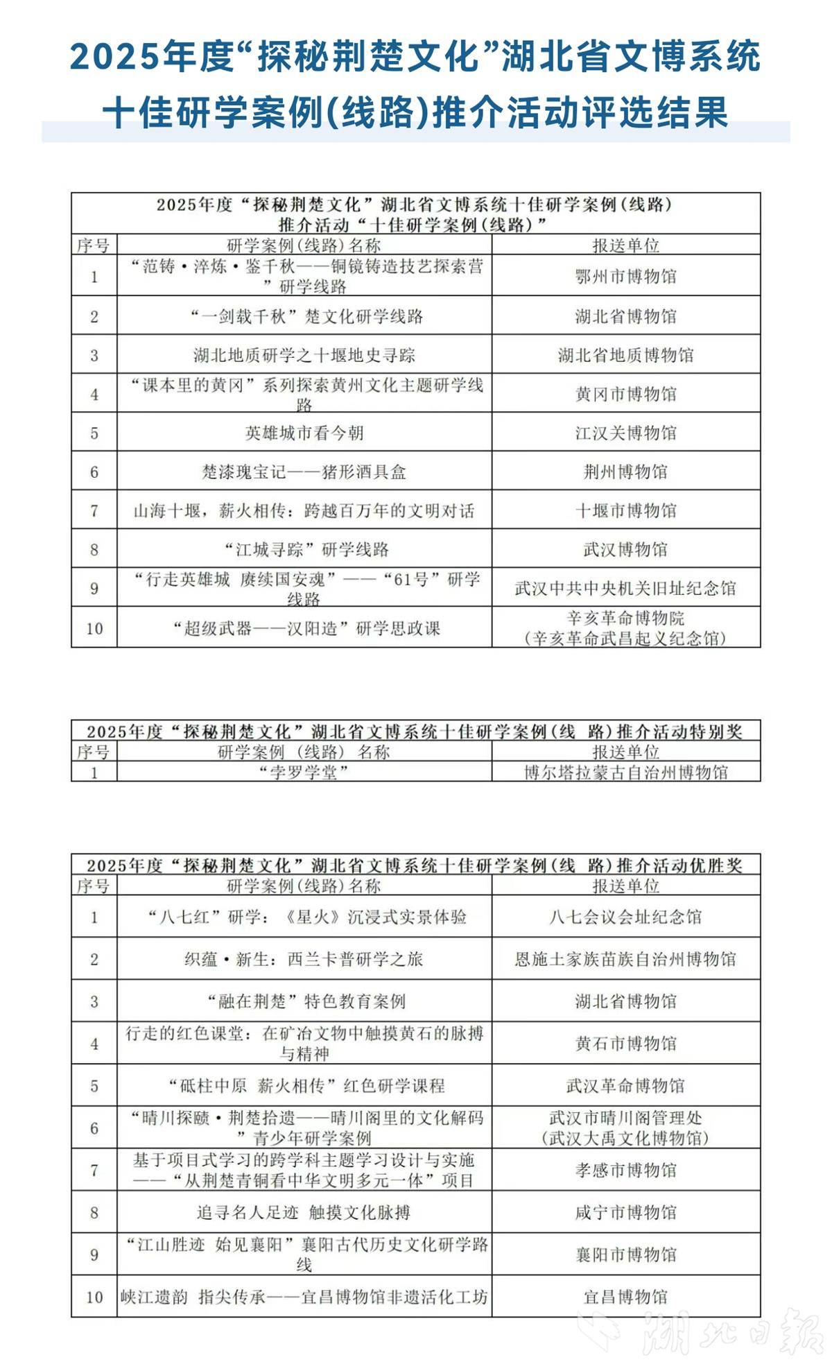 2025年度“探秘荆楚文化”湖北省文博系统十佳研学案例(线路)