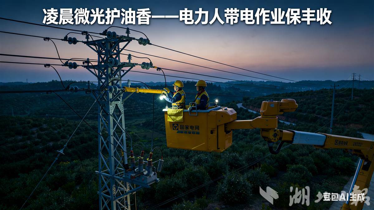 油茶还在酣睡,鄂电人已站上高空(图片为AI制作)