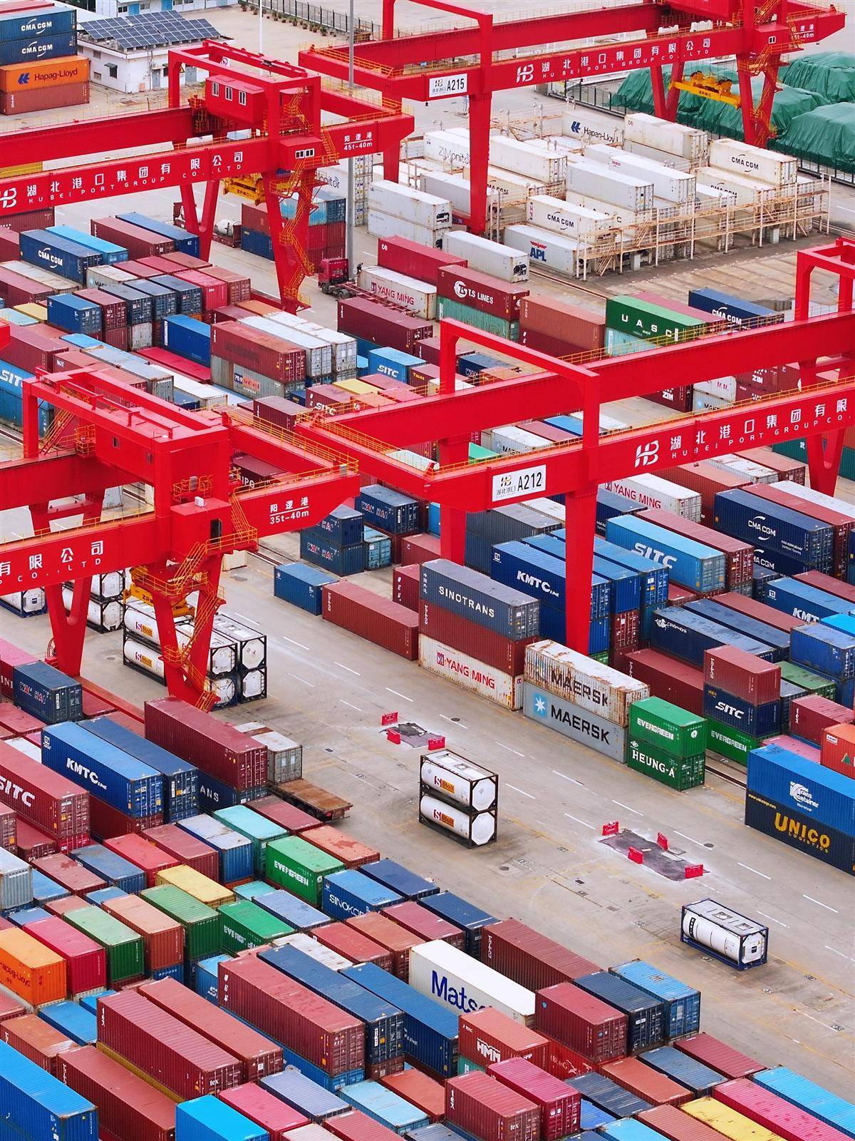 繁忙的阳逻铁水联运码头