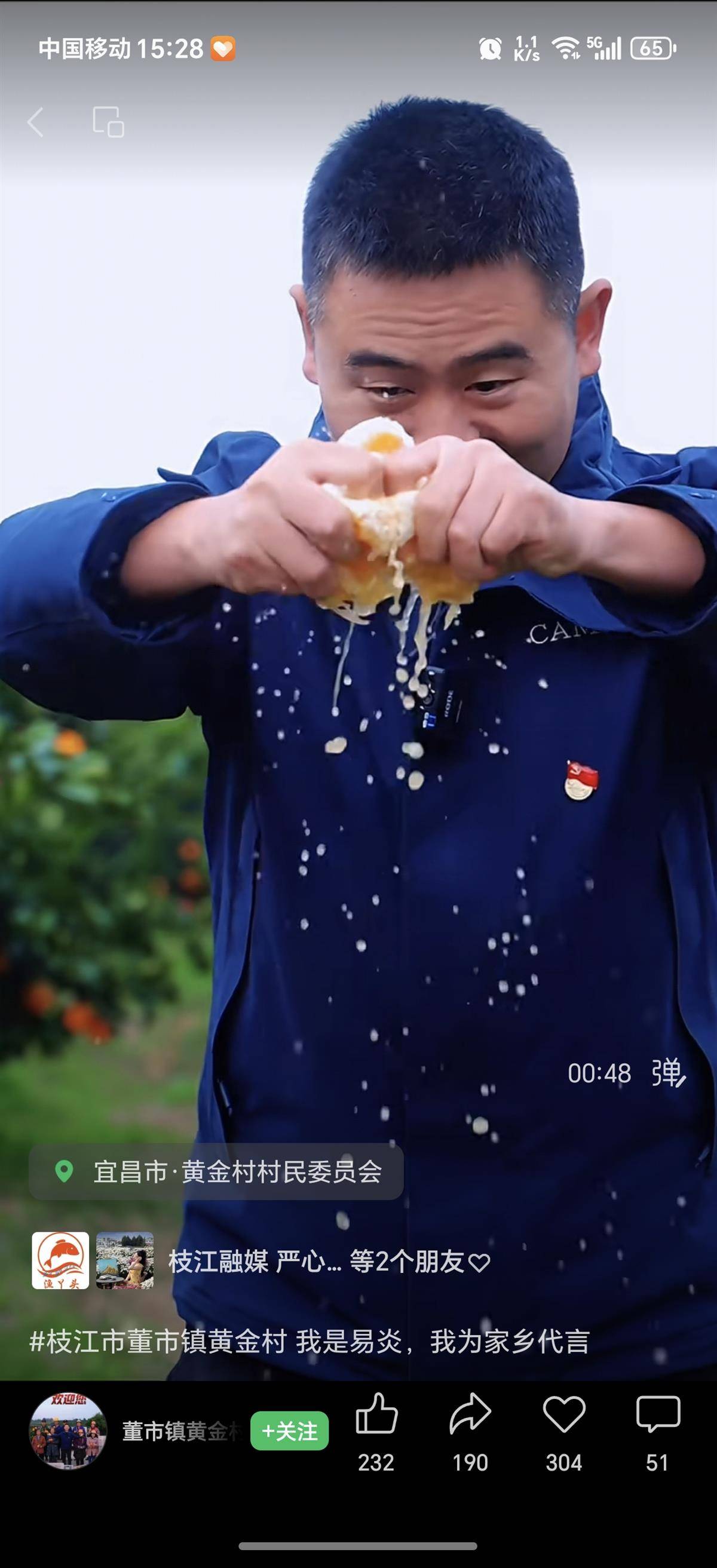 “看一下咱们村的脐橙,个个饱满、汁水丰富!”果树下,黄金村党总支书记易炎随手摘下一颗脐橙,剥皮、捏出汁水,鲜嫩的橙香好似溢出屏幕。
