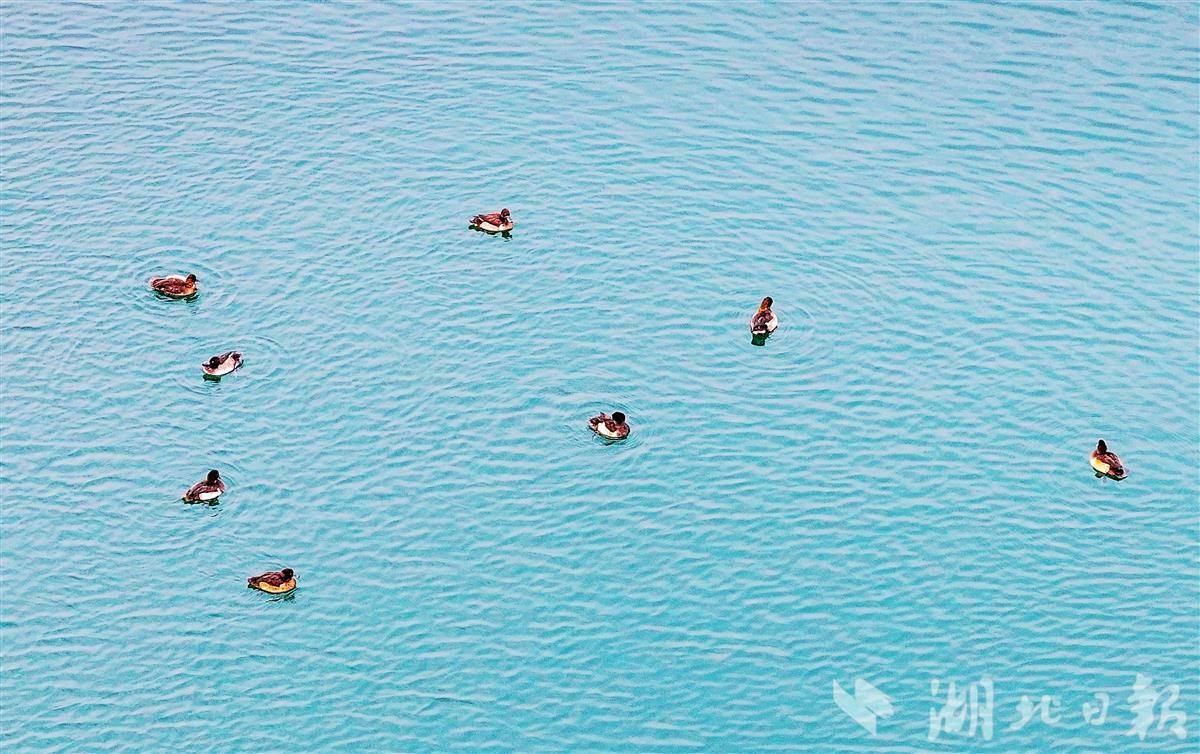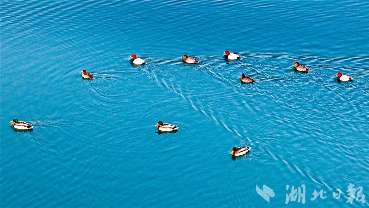 郧阳湖国家湿地公园为南水北调中线工程核心水源涵养地,生态水域面积1743.6公顷,其中湿地面积1404.09公顷。近年来,郧阳区坚持“共抓大保护 不搞大开发”理念,加大湿地保护和修复力度,良好生态吸引骨顶鸡、斑嘴鸭、苍鹭等鸟类在郧阳湖“安家”。目前,郧阳湖已发现鸟类64种,数量超过1.4万只,越冬候鸟种类和种群数量不断增加。其中青头潜鸭为国家一级保护野生动物,在世界自然保护联盟的濒危物种红色名录中评估等级为极度濒危;红头潜鸭为国家二级保护野生动物,在世界自然保护联盟的濒危物种红色名录中评估等级为易危。(视界网 周家山 摄)
