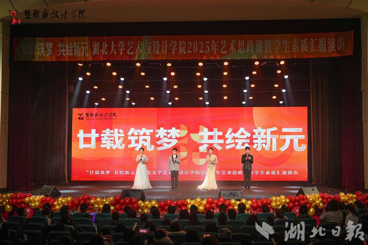 湖北日报讯(记者李玉麟、通讯员周蓓蕾)“我们都是追梦人,千山万水,奔向天地跑道……”12月5日晚,湖北大学小礼堂内歌声嘹亮,台上参演人员与台下观众齐声高歌。2025年度总结表彰大会暨艺术思政课学生素质汇报演出圆满落幕。这场以“廿载筑梦 共绘新元”为主题的汇演,既是学院建院20周年的献礼,也是一堂别开生面的艺术思政大课。