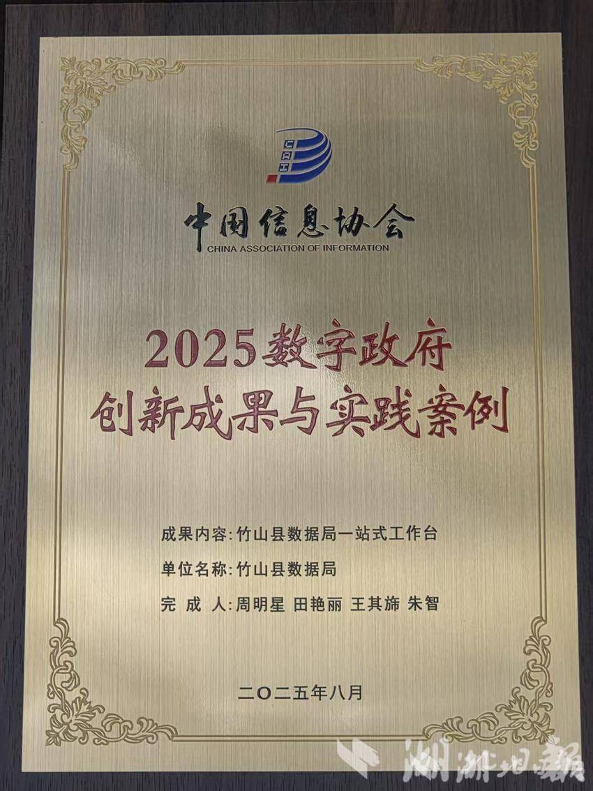 竹山县第一次“出圈”是8月28日。在贵阳举办的2025中国国际大数据产业博览会上,中国信息协会发布了《2025年数字政府创新成果与实践案例》,竹山县数据局自主研发的“一站式工作台”成功入选,系全国唯一入选的县级单位成果案例。