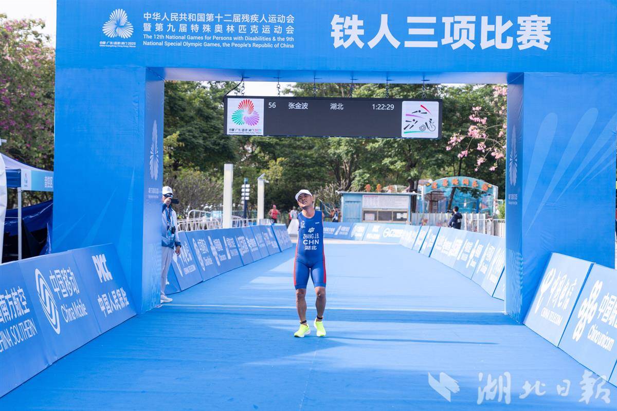 湖北铁人三项队运动员张金波获PTS3男子组金牌,这也是残特奥会湖北首金。(省残联供图)