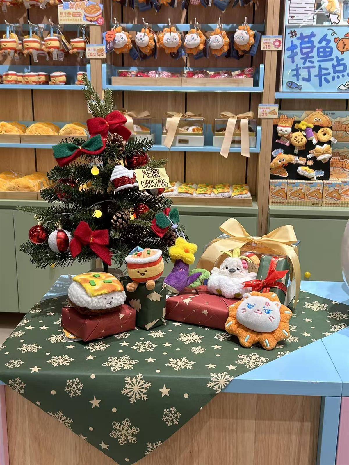 全员饿人最早做热干面、豆皮等武汉美食的毛绒挂件,今年推出的“蒜鸟”是第一款发声玩偶,受到不少外国游客的青睐。“品牌持续推出了‘薯宝’‘喵么狮’等多款发声玩偶,延续了这一热度。境外消费者更倾向于成套购买,客单价通常在300元到500元之间。”朱慧娟介绍。