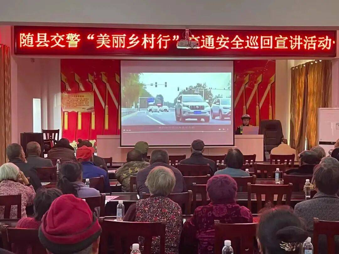 随州交警开设“板凳课堂”,以身边真实案例为村里老年群体敲响安全警钟。民警为群众播放安全警示片,剖析闯红灯、大货车盲区、农用车载人等常见风险,并结合秋冬季天气特点,讲解雨雾冰雪天气出行注意事项。通过案例与叮嘱结合的方式,让安全知识入耳入心,切实提升了农村老年群体的自我保护能力。
