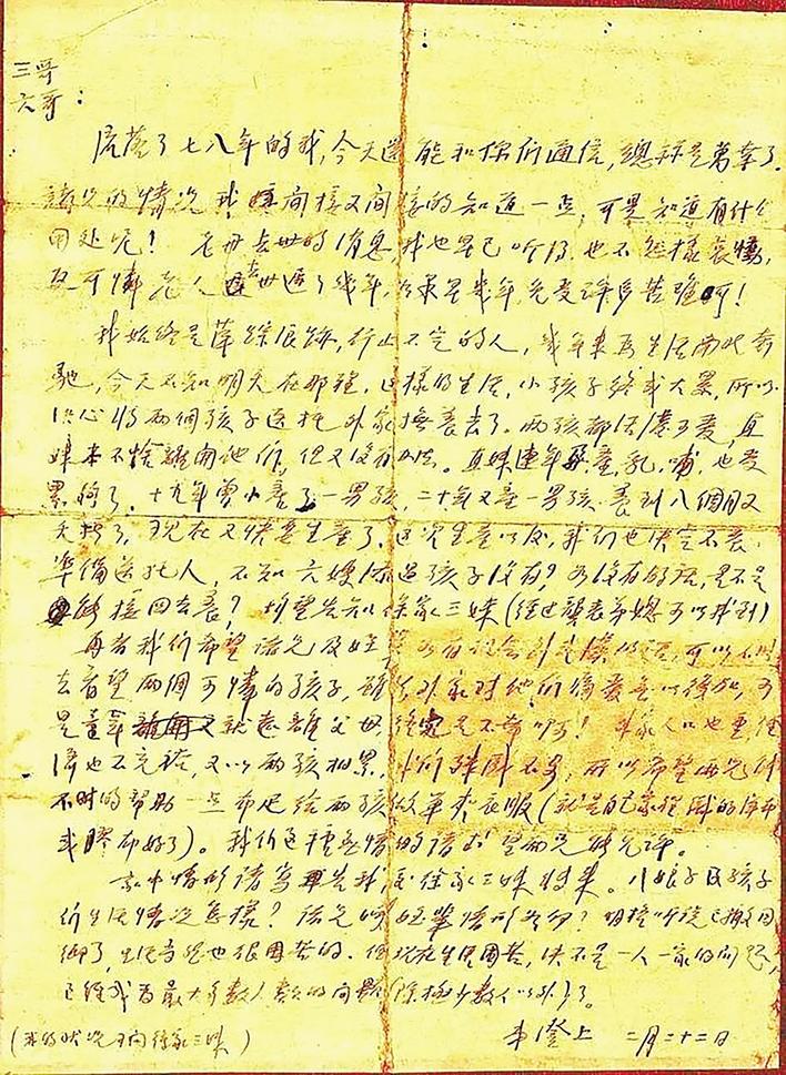 “三哥、六哥:流落了七八年的我,今天还能和你们通信,总算是万幸了……”