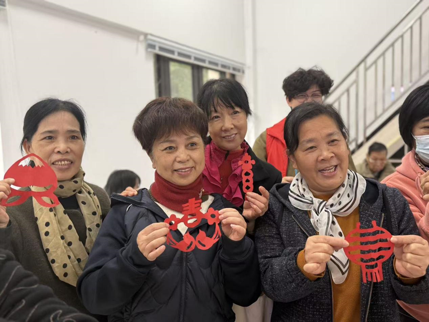 与此同时,社区新时代文明实践站内,非遗剪纸体验活动温馨启幕。志愿者通过简洁生动的讲解,向参与老年居民系统介绍了中国剪纸艺术的历史脉络与主要流派特点。进入实践环节,志愿者化身“小老师”,从纸张折叠技巧、纹样勾勒方法到剪刻操作要点,逐一耐心示范、全程协助指导。老人们在轻松愉悦的氛围中动手实践,红纸翻飞间,一个个鲜活的剪纸作品逐渐成形,在亲身参与中深切感受传统手工艺术的独特魅力与创作乐趣。