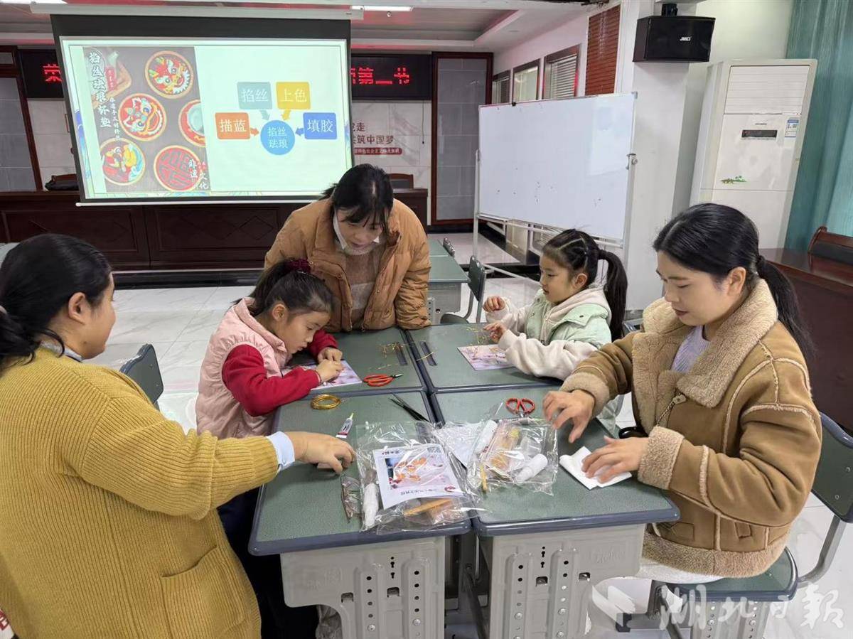 湖北日报讯(记者李光正、通讯员裴依、杜暄)“和爸爸一起掐丝、点蓝,太有趣了!铜线要弯得刚好,颜色要涂得均匀,虽然有点难,但完成后特别有成就感,我现在特别喜欢这种传统手艺。”近日,武汉东湖高新区九峰街道荣芳里社区开展“荣芳学堂”掐丝珐琅第三期非遗亲子课活动,12组青少年亲子家庭齐聚社区党员群众服务中心,在指尖流转间感受国家级非物质文化遗产的独特魅力,10岁的周子轩小朋友兴奋地说。