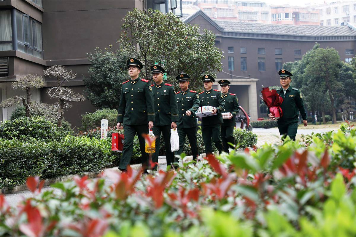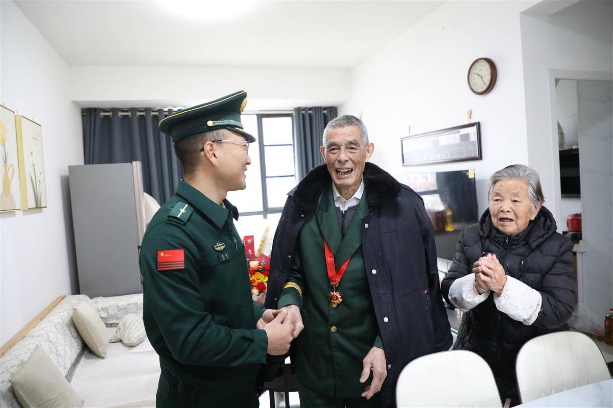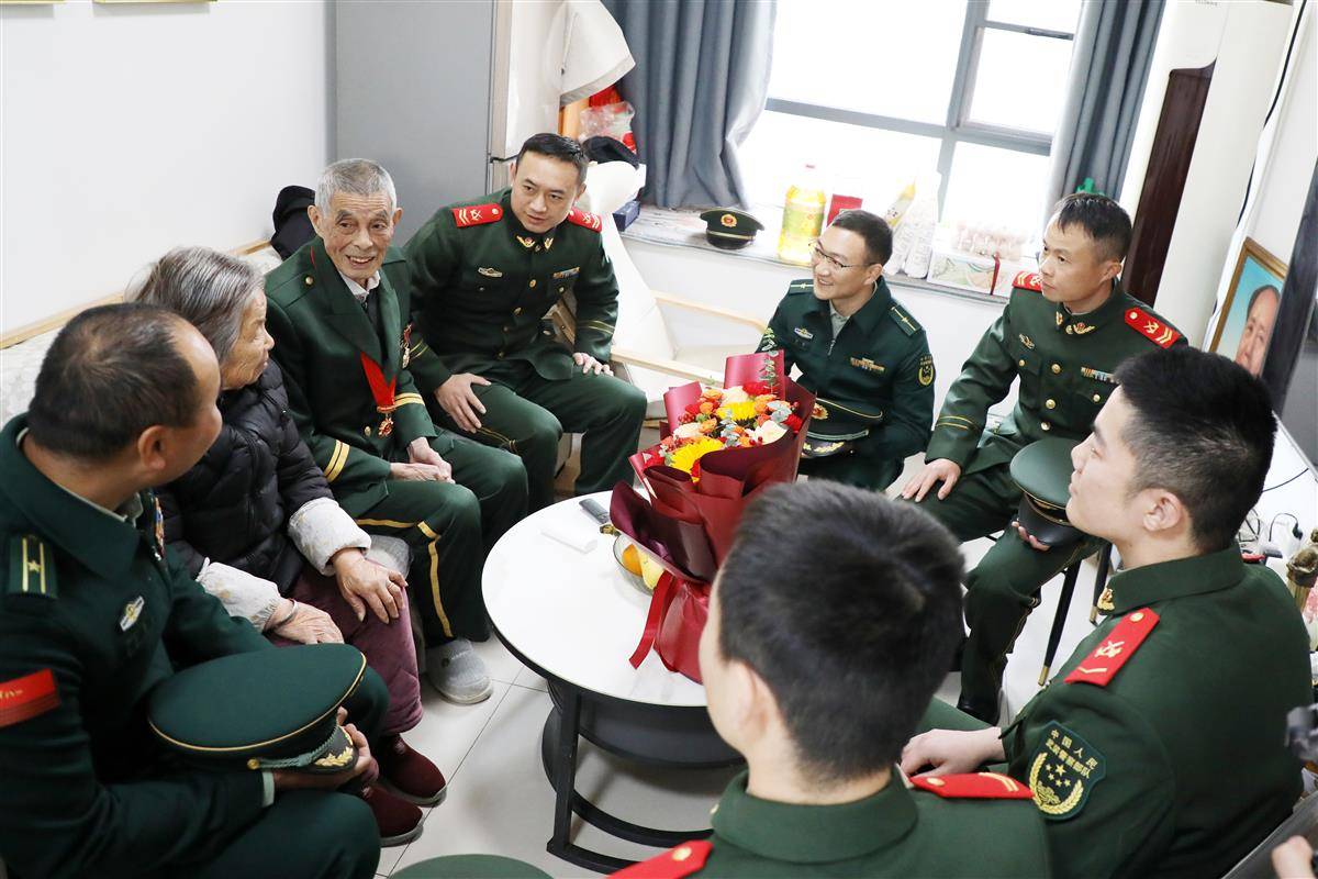 “老英雄,我们来看您了!”支队官兵带着慰问品,专程走访慰问驻地参战老兵。
