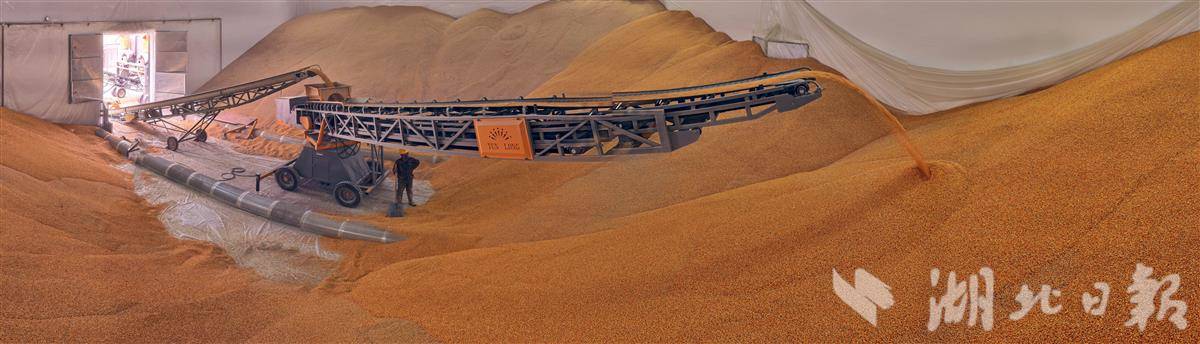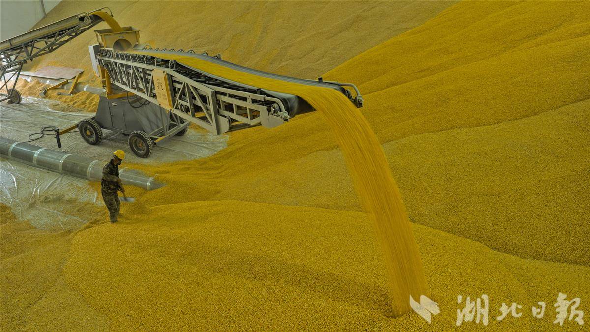 12月10日,宜昌粮食集团淯溪中心粮库二期开仓纳粮,标志着宜昌最大粮食综合产业园建设迎来关键进展。现场满载稻谷的卡车有序排队,传输设备将谷物持续送入仓内,六栋新建准低温平房仓投用后,粮库日均粮食处理量可达1万吨。