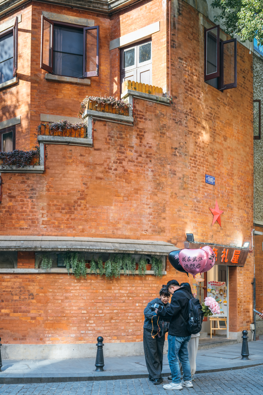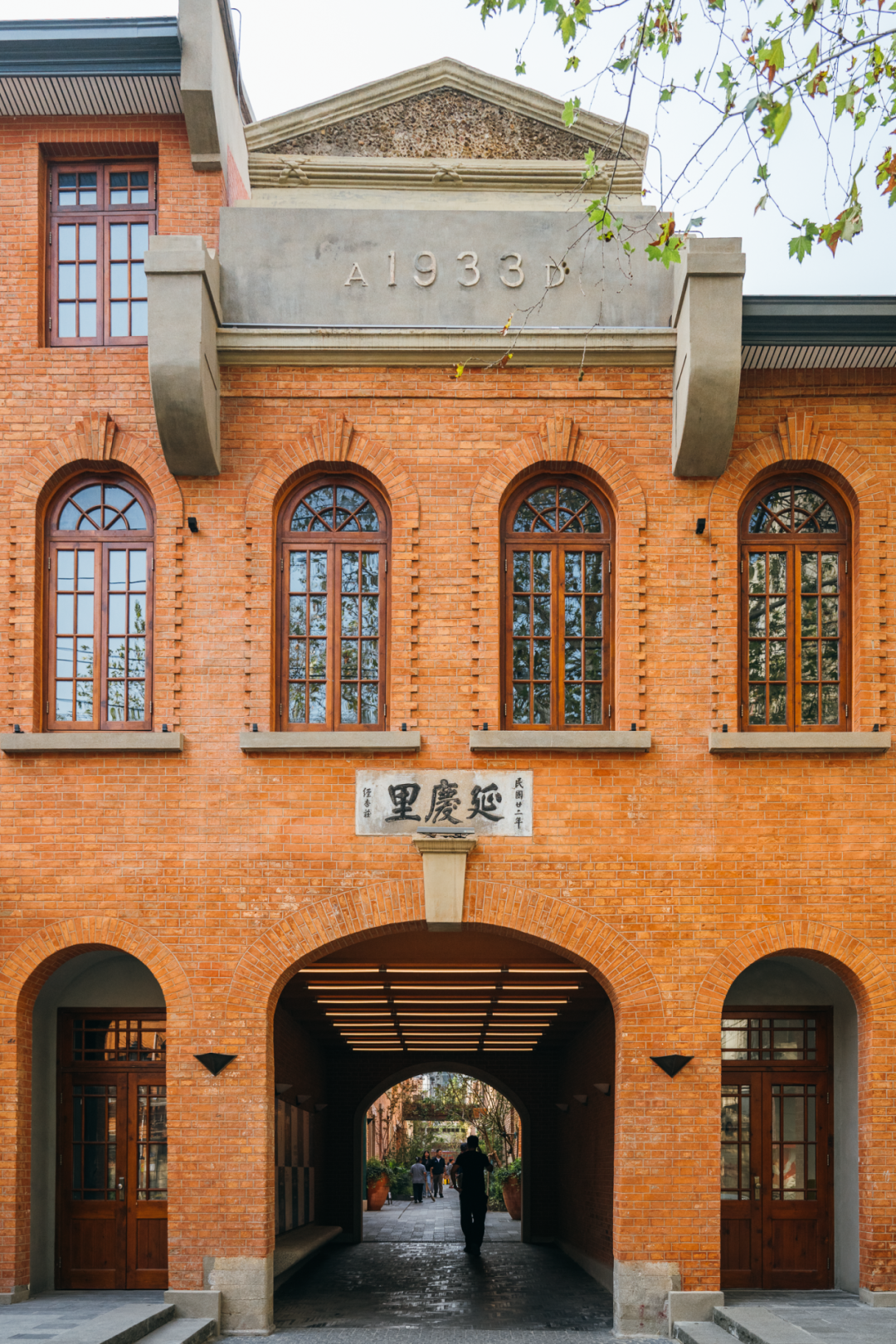 不远处延庆里复古的红砖墙