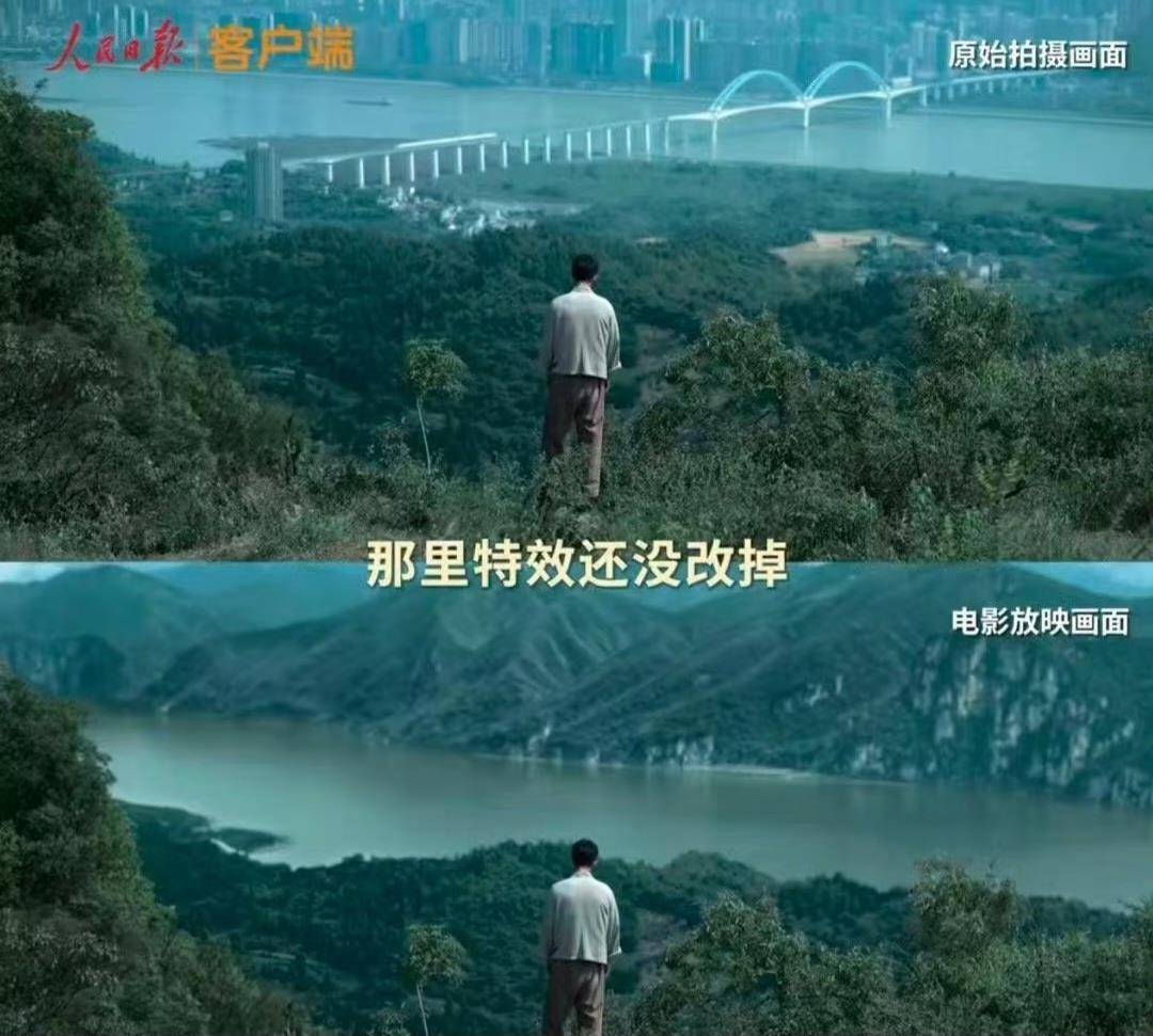 原始拍摄画面中宜昌的现代图景与电影中的特效画面对比,是跨越时空的“见证”。