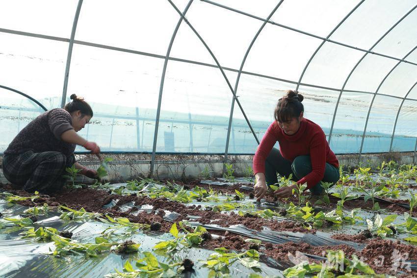 在向家片区的蔬菜大棚里,来自恩施的新农人李伟正带领工人精心移栽一种特别的作物——明月草。今年,他大胆尝试,从山东寿光引进了10亩这种药食同源的经济作物进行试种。