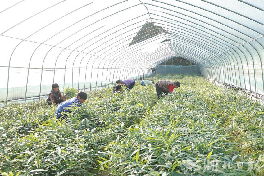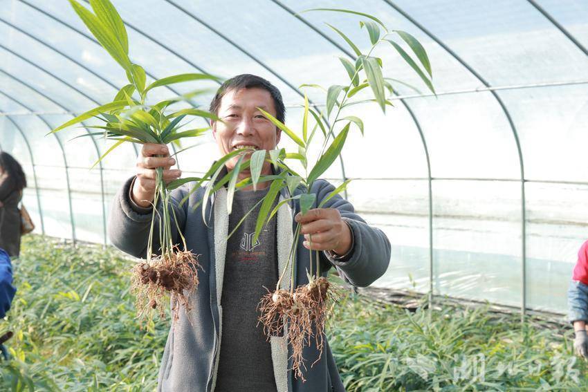 不远处的中药材大棚内,则是另一番热闹景象。基地负责人廖大林正组织工人根据订单采挖优质的黄精种苗。凭借过硬的技术和良好的信誉,他培育的富硒黄精苗深受市场欢迎。
