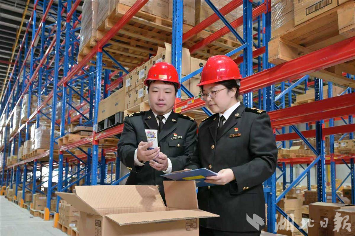 武汉海关关员正在对跨境电商货物进行现场监管。