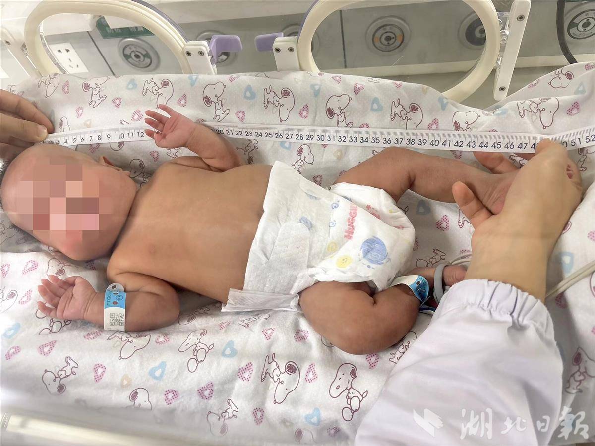 湖北日报讯(记者曾莉、通讯员谢莉莉、林云、龚雨西)胎龄仅24周+1天、出生体重仅650克的超早产女婴小羊羊(化名),经武汉大学人民医院(湖北省人民医院)新生儿科80余天精准救治,体重增至2.89公斤,各项生命体征平稳,无颅内出血等严重后遗症。近日,小羊羊顺利康复出院。