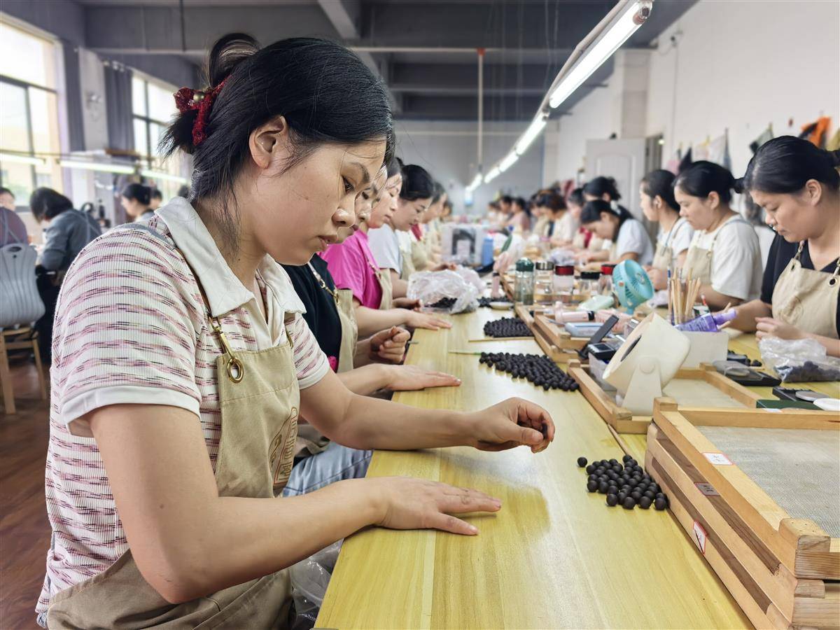 生产线上,女工鲁三燕灵巧地搓着香珠。“以前在外地打工,最亏欠孩子。”她笑容舒展,“现在能接送孩子、放假同步,顾家挣钱两不误,月收入有4000多元。”