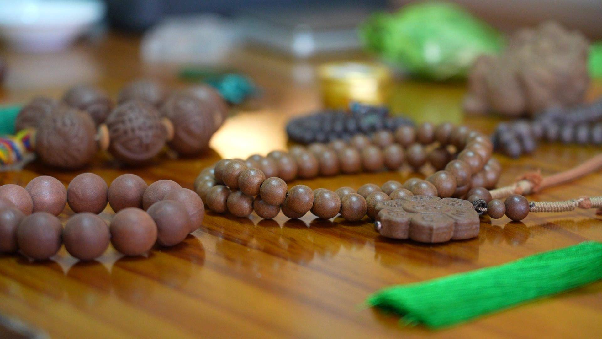 走进公司阴干房,犹如踏入香的秘境:深褐天年珠温润,墨绿青莲珠清甜,线香与胸牌相映,香锤、香梳等生活用品琳琅满目。