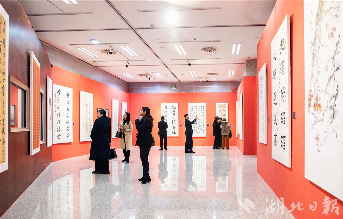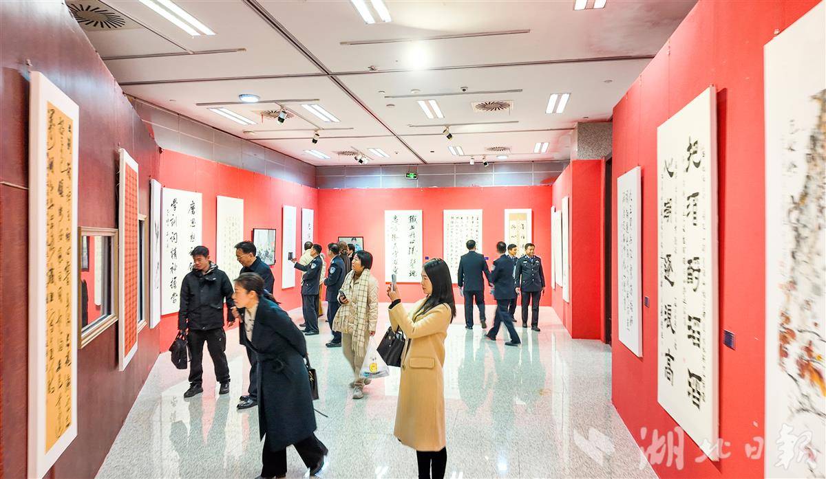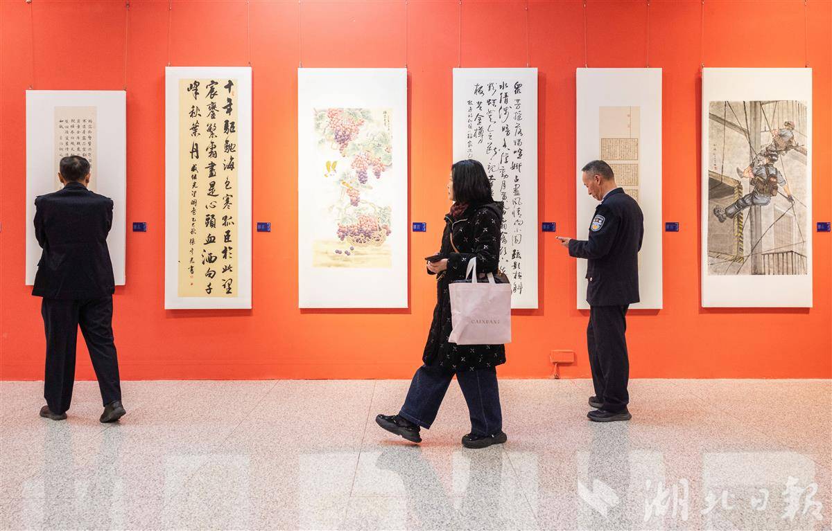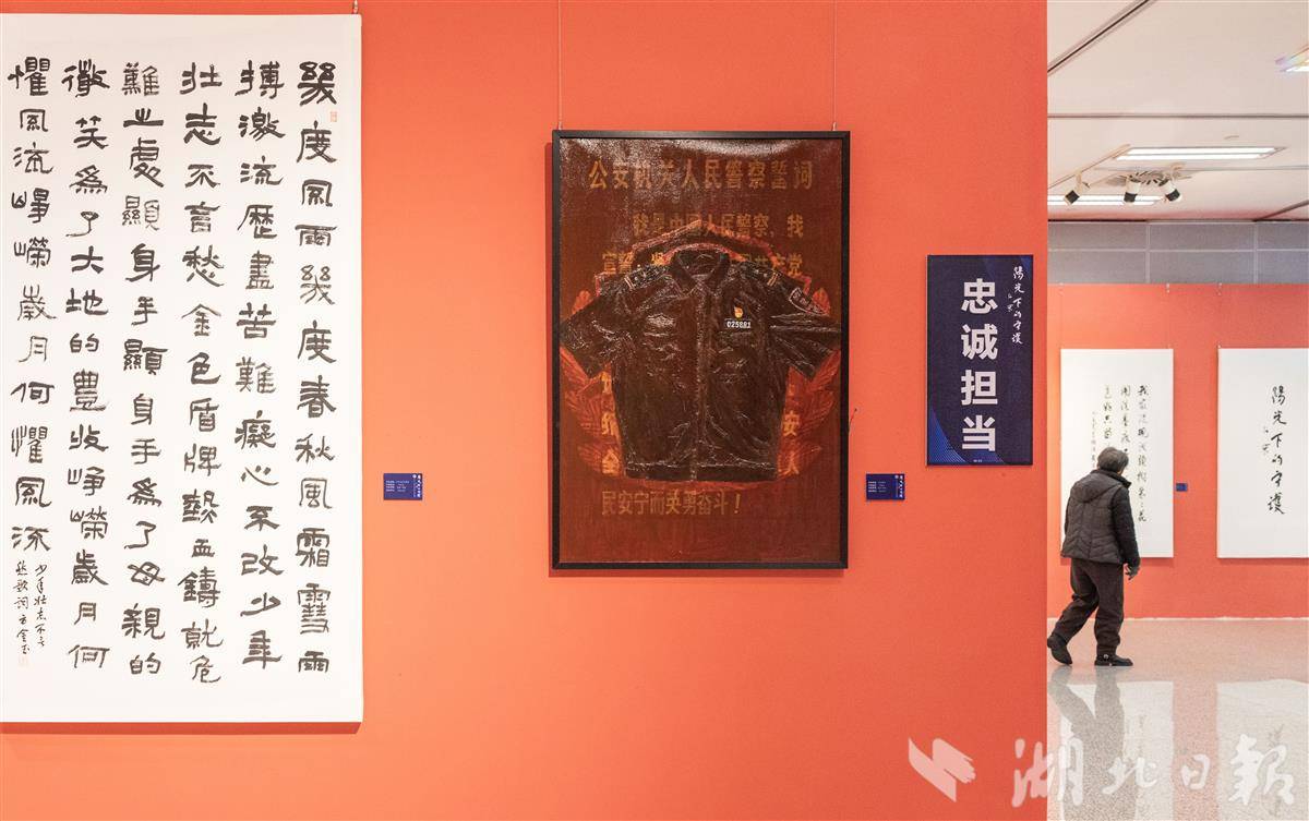 12月13日,湖北省图书馆,由湖北省公安厅主办的湖北公安机关“阳光下的守护”书法美术摄影展开幕,195幅优秀作品整齐陈列,吸引众多群众驻足观看。