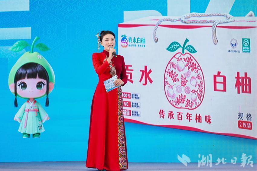 此次白柚推介会由宣恩县人民政府、西湖区人民政府联合主办,集中展示了贡水白柚鲜果、深加工产品及文创衍生品,并配套土家歌舞、非遗展演、产业签约、沉浸式互动体验等环节。