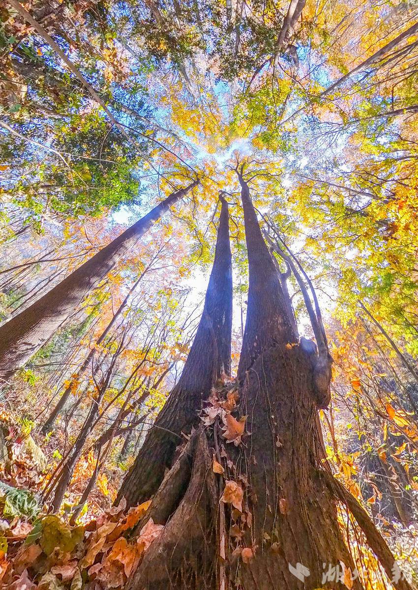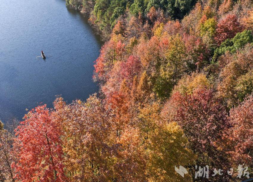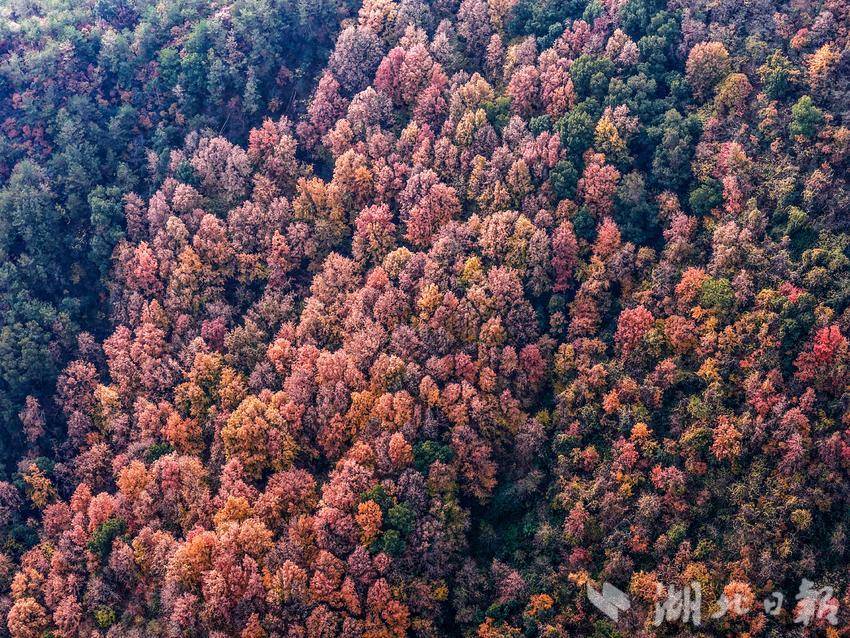 入秋以来,蕲春县张塝镇塔林村九潭冲大峡谷的万亩连片红枫林海迎来最佳观赏期。