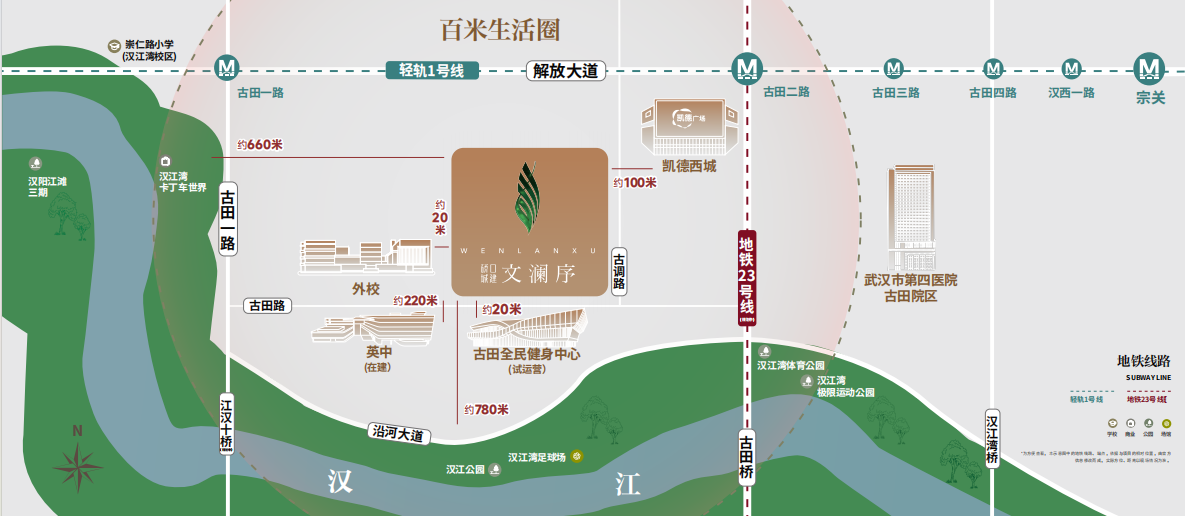 高层享一线江景、举步即达的凯德广场、远近环伺的生态公园、近在咫尺的古田健身中心(试运营)……所有关于理想生活的想象,都浓缩于百米生活半径之内。