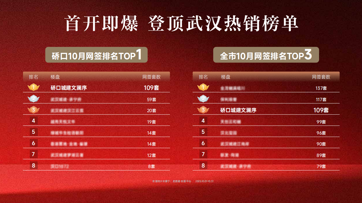 这些在武汉第四代住宅市场中形成的优势,共同构成了文澜序首开即热销的硬核逻辑。硚口城建文澜序首开即斩获当月硚口区网签排名TOP1、武汉市网签排名TOP3的好成绩,不仅证明了硚口城建打造“好房子”的强大实力,更预示着未来“六子连珠”将为汉江湾带来更高品质的人居想象。