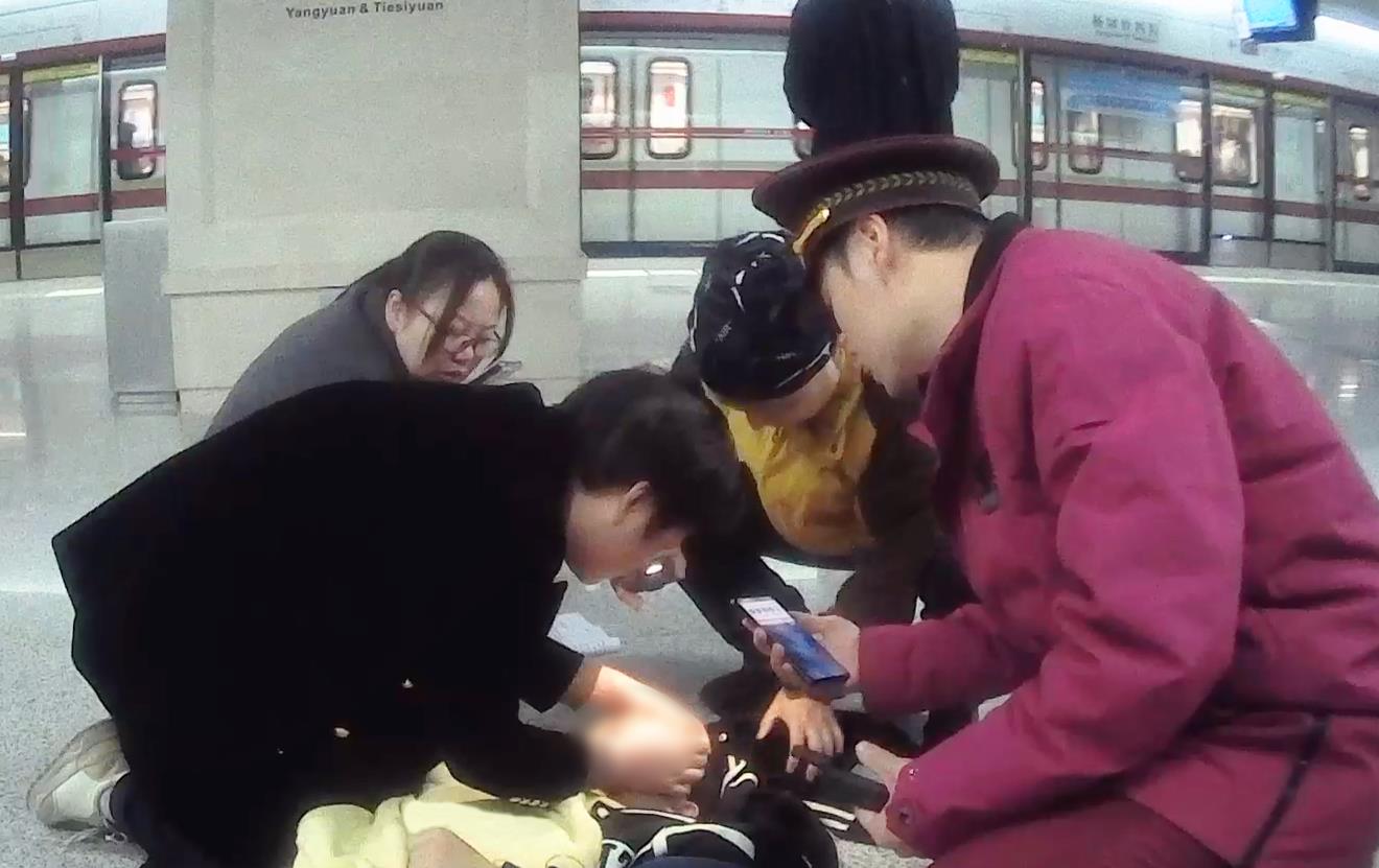 在等待急救120到来期间,值班站长何崇眈脱下身上制服棉袄,轻轻盖在乘客身上保暖;驻站民警疏散围观人群,保持现场秩序;车站护卫取来担架,为后续转运做好准备。