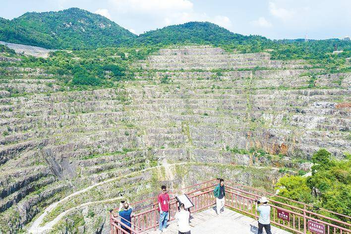 从上世纪80年代开始,大冶铁矿积极探索生态修复之路。一代代矿工在排土场石头上种树,开启了石头上种树的生态奇迹。随着露天开采的结束,大冶铁矿进一步加大地面开采区域的生态环境修复力度,将世界第一高陡边坡工业遗址、垂直落差444米的东露天采坑成功打造为中国第一家国家矿山公园暨爱国主义教育基地,开启了矿山生态修复与旅游开发相结合的新篇章。