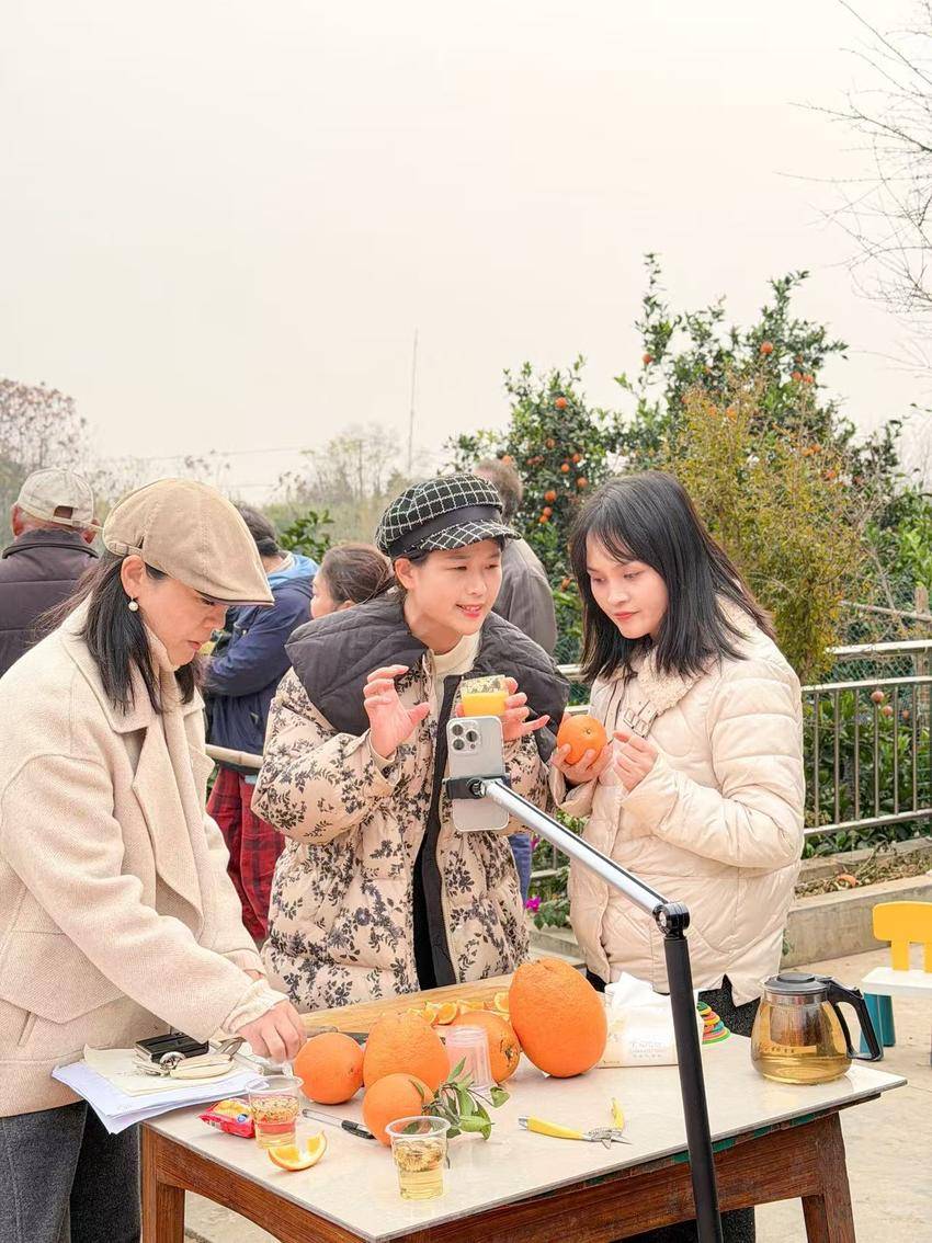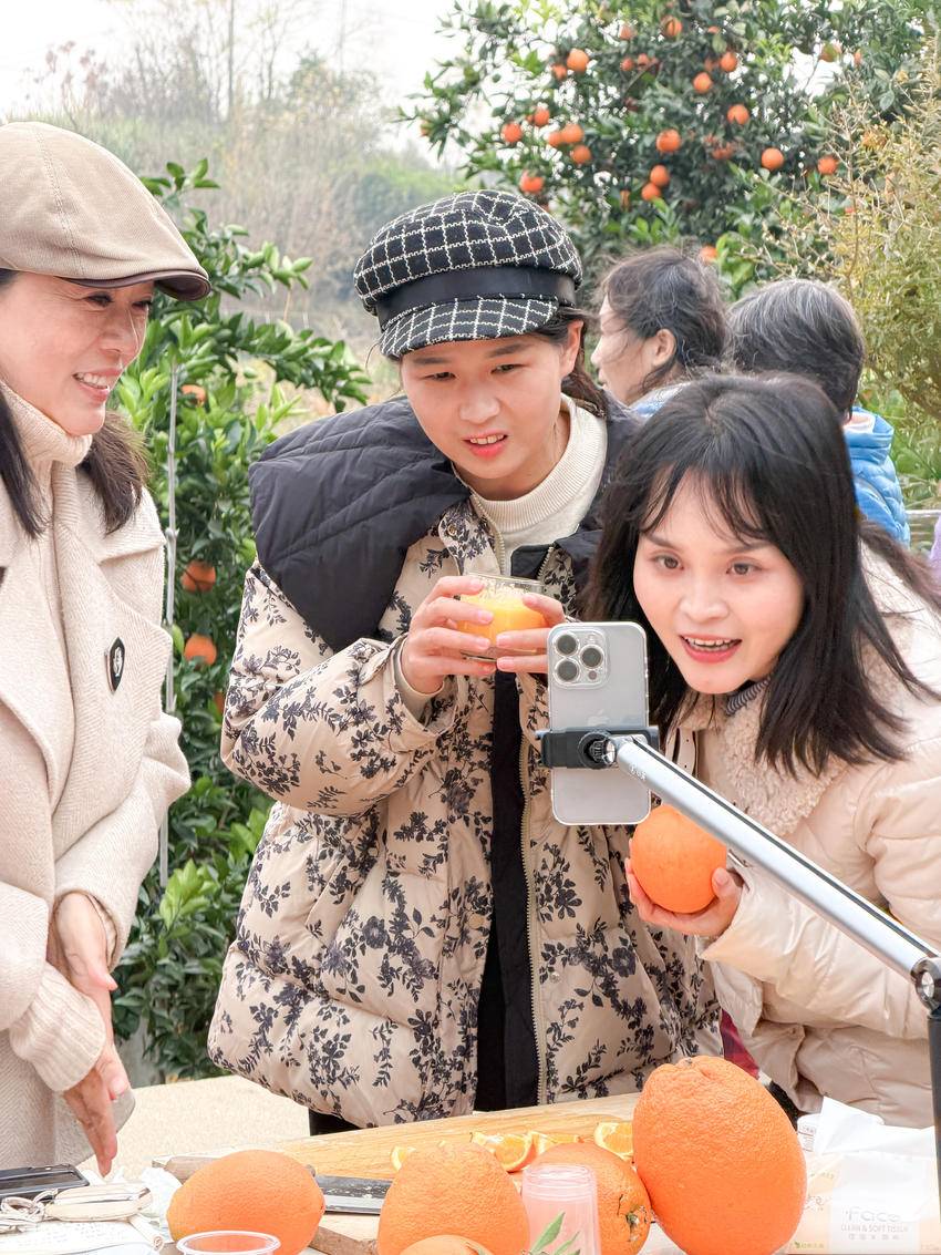 江东庭口中的“年轻人”,正是活跃在田埂上的黄州网络推介官洪婕和方玉贝。她们以手机为平台,创新“特色种植+农旅融合”的模式,组建黄州区农文旅内容矩阵,把线上流量引导到线下消费,通过直播带货、短视频推介等方式将“望橙”推广到更广阔的市场,为“望橙”品牌打开一条从田间直达云端的新销路。