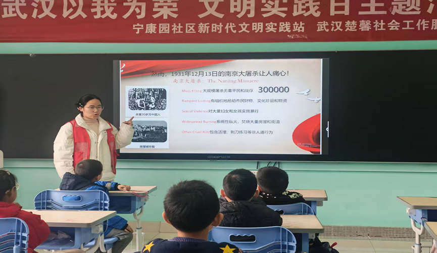 湖北日报讯(通讯员胡鹏)国家公祭日来临之际,为引导青少年儿童铭记历史、厚植爱国情怀,12月12日,武汉经开区沌口街道宁康园社区新时代文明实践站开展“童心铭史,‘鸽’颂和平”主题纪念活动,将历史教育与英语教学相结合,让和平理念深植童心。