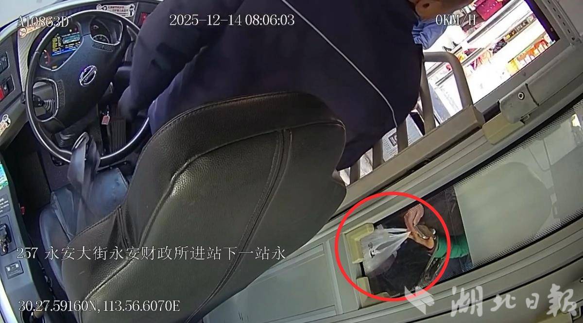 车载监控视频显示:12月14日上午,武汉公交257路驾驶员付汉平驾驶2197号车由永安大街代家庄开往世城村洪店湾。8时05分,当车辆行驶至永安大街永安财政所站点时,一位中年女子手中塑料袋装的物品引起他的注意。“这位女乘客手里拎的塑料袋,可以清晰地看到有两瓶油漆,还有几瓶瓶装液体。”付汉平说。