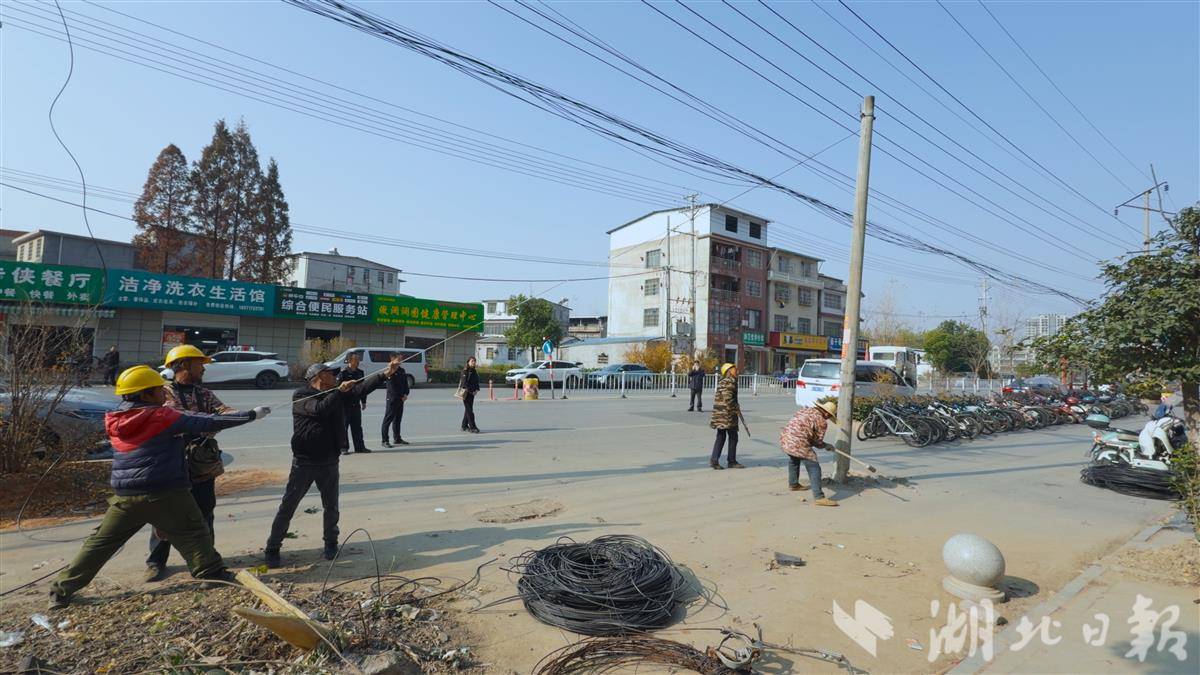 经过前期摸排,各运营商在此处架设的光缆多达十余条。蕲春县委政法委召开现场协调会,明确整改方案,对杂乱线缆进行统一归整,清理废弃线缆,将在用线路全部迁改入地,彻底消除“空中飞线”。工程自10月中旬启动以来,累计完成入地管廊铺设约1000米,实现校门口主要区域弱电全部“入管入地”。