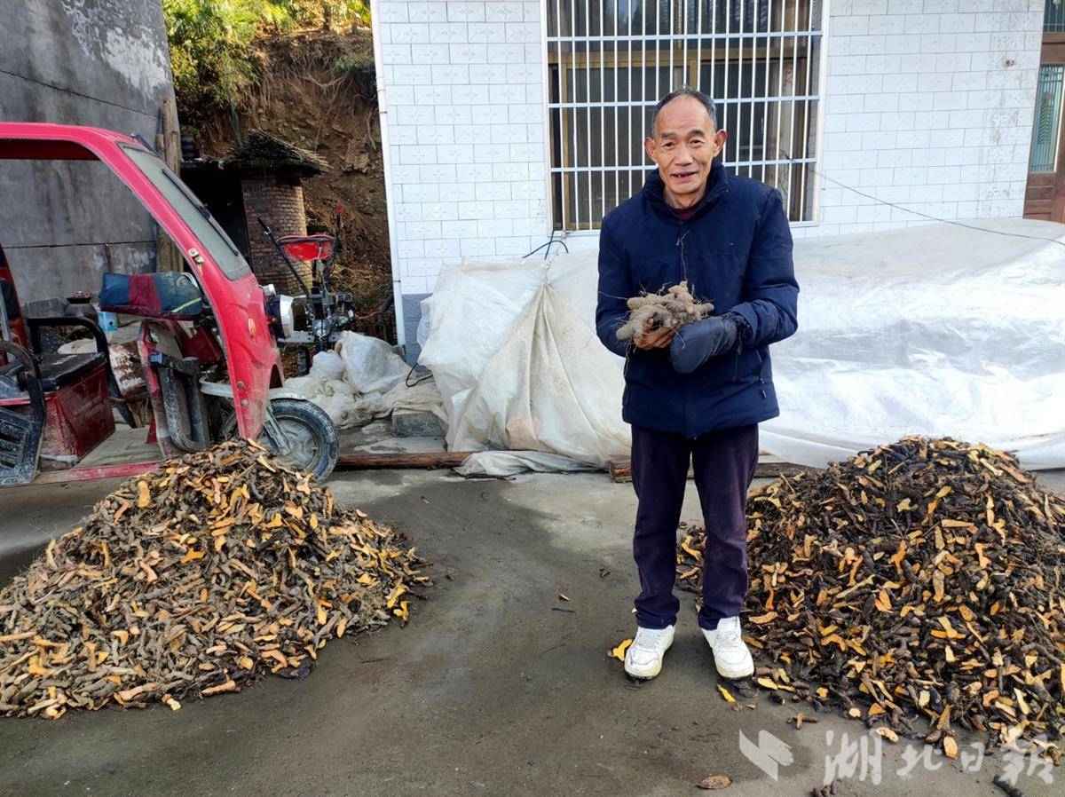 湖北日报讯(通讯员张云朝)12月14日,竹山县竹坪乡佛洞村的冬日暖阳里,华直德夫妇的院落飘着浓郁的姜香——地上堆着小山似的野生黄姜,活姜足有2000斤,晒干能出800斤。“收购商上门收,干姜每斤5元,这两天就能变现!”夫妇俩边擦汗边笑。冬闲的“闲”字,早被山间的“藏货”变成了踏实的收入。