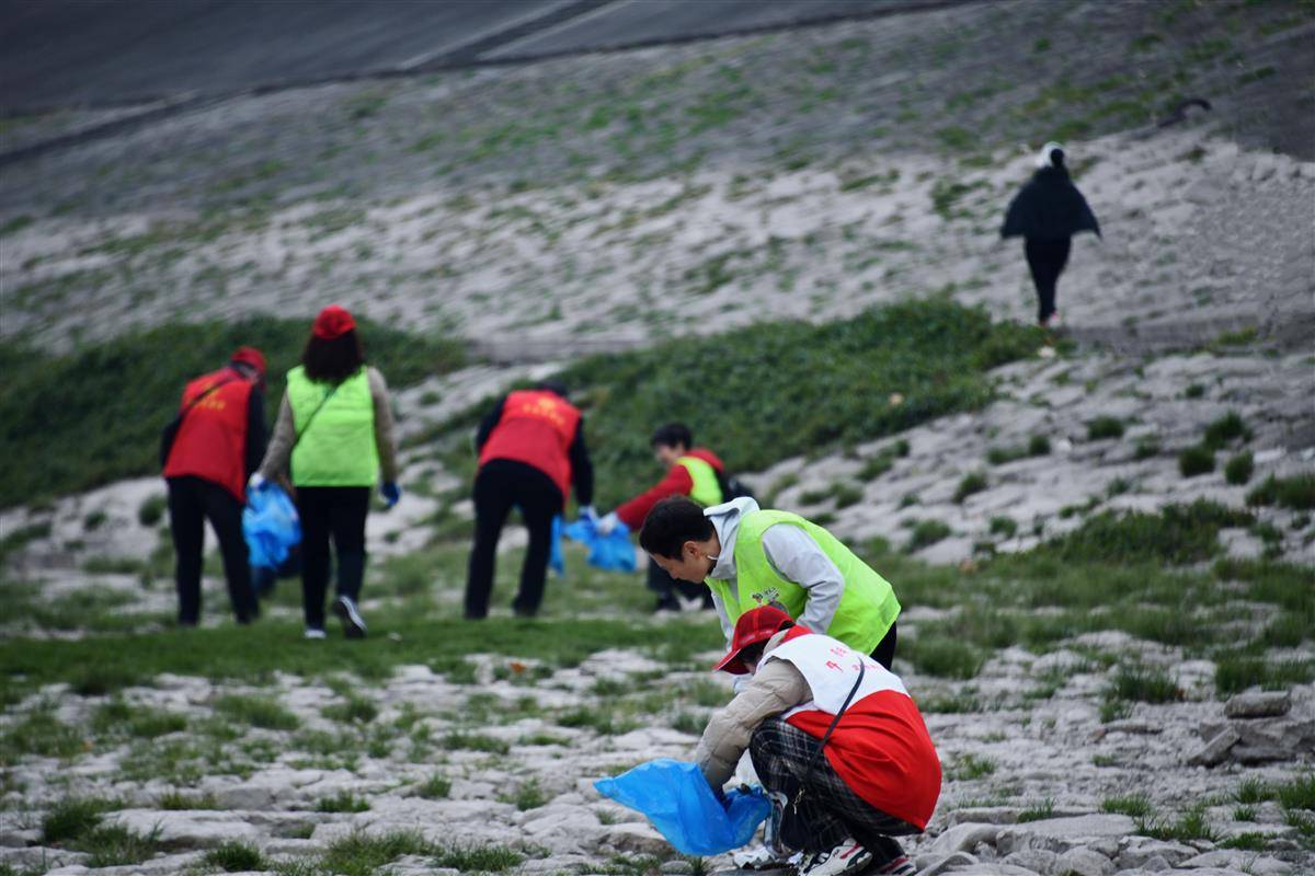三峡蚁工正在江滩捡拾垃圾