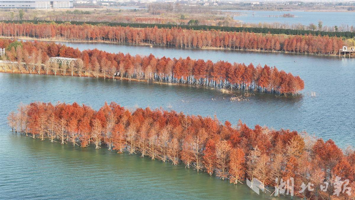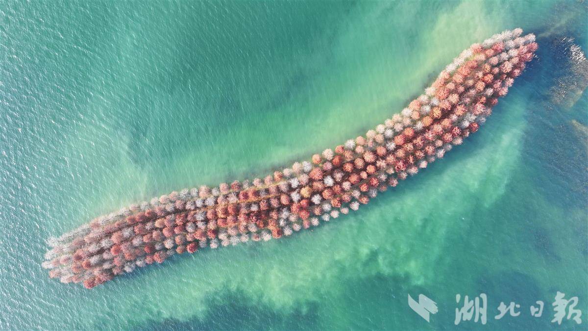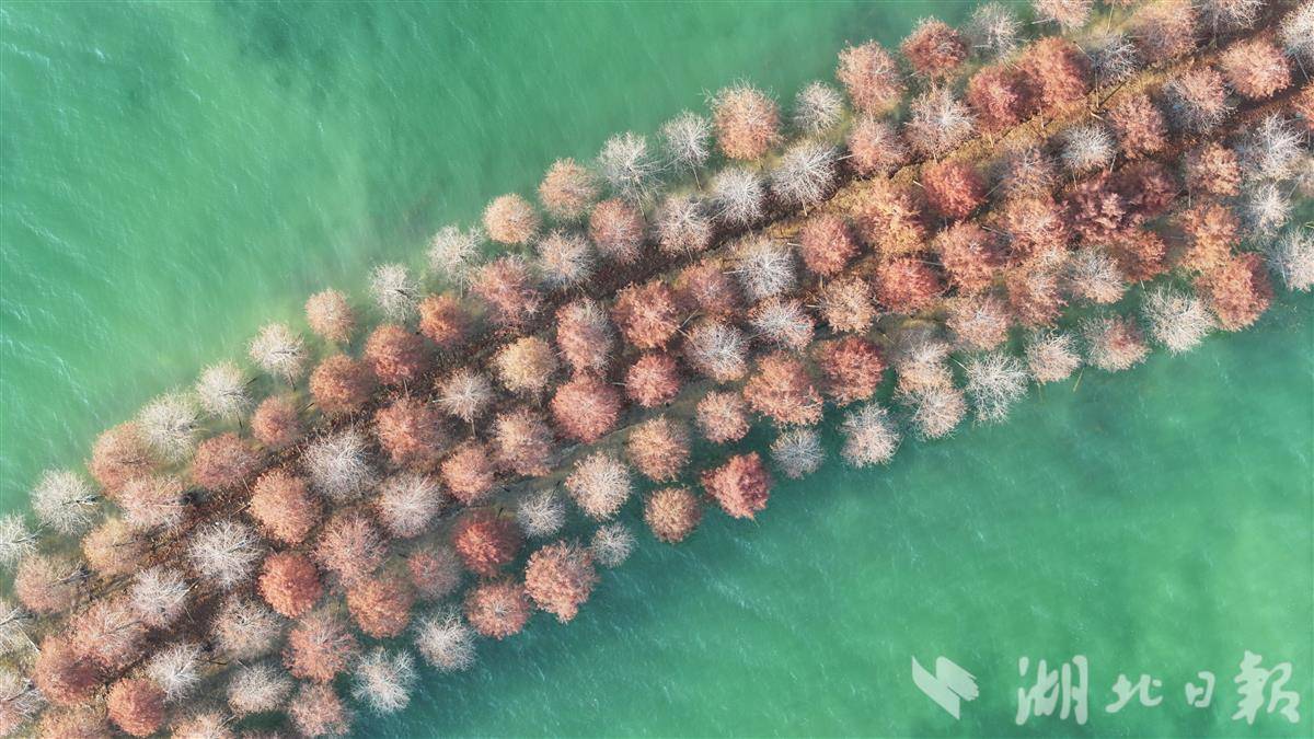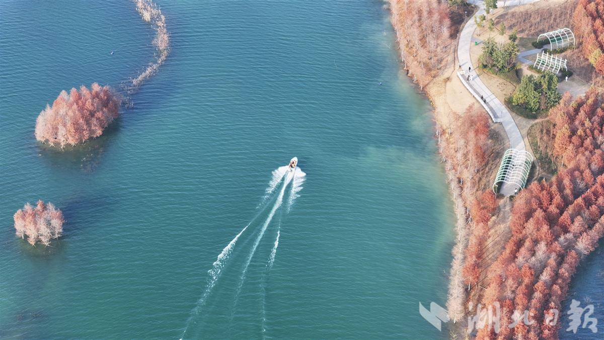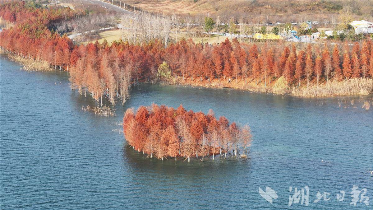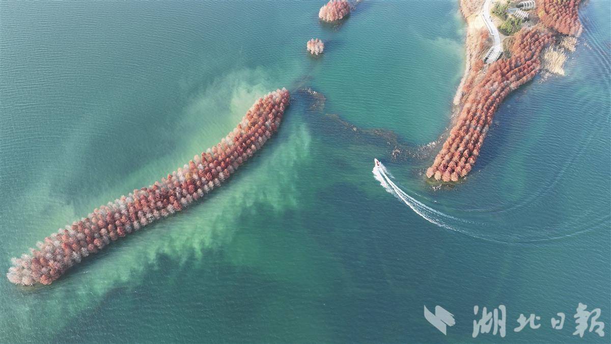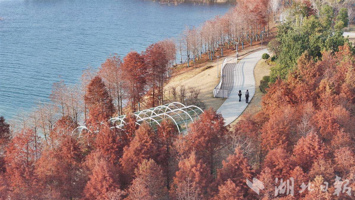 12月15日,荆门漳河红杉林正直绚丽观赏期,红杉枝叶在暖阳下呈现红、金交织的色彩,与碧绿漳河水交相辉映,美轮美奂,随手一拍都是大片。漳河水库是荆门市的一张名片,红杉林景区更是成为库区人气高涨的网红打卡点,引众多游人接踵而至,共赴冬日红杉的绚烂之约。(湖北日报全媒记者 陈少哲 摄)