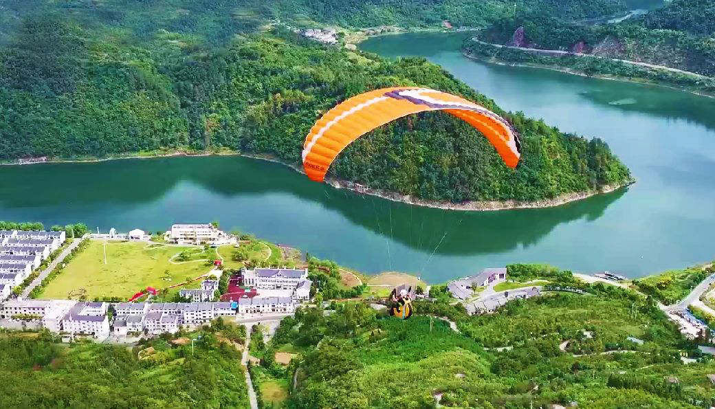 十堰市张湾区方滩乡滑翔伞运动与当地文旅资源结合,打造飞行营地,吸引了大量游客前来体验“体育+低空经济+旅游”的魅力。