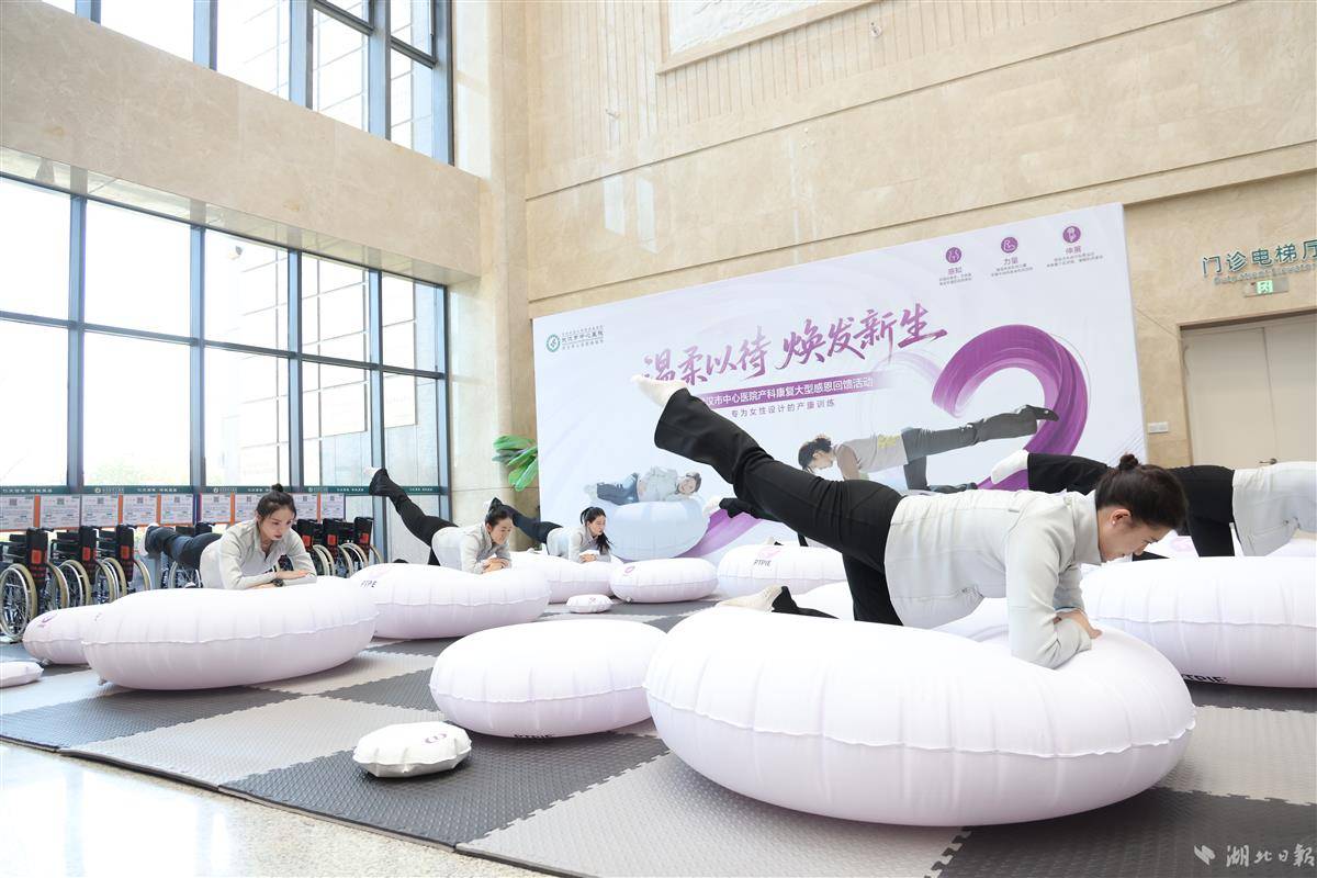 湖北日报讯(记者余瑾毅、通讯员马遥遥)“深吸一口气,吐气,核心慢慢收紧,竹节式抬起臀部、髋部、腰部、胸部……”12月14日,在武汉市中心医院杨春湖院区门诊东大厅,不少女性朋友在产科专家指导下,切身体验WAFF盆腹运动康复训练。这场以“温柔以待 焕发新生”为主题的盆底康复公益活动,吸引近百名产前、产后女性前来体验学习。