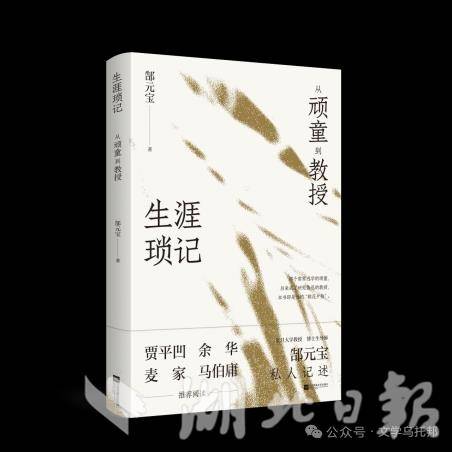 《生涯琐记:从顽童到教授》是郜元宝教授在做了多年的文学研究、文学批评、文学教育工作之后,写下的一部梳理、回顾成长历程的散文集,近日由江苏凤凰文艺出版社出版。作者在书中用质朴而幽默的笔触,将自己的人生来时路娓娓道来,将属于他个人、也属于一代人的记忆泼洒纸上,带领读者追忆似水年华,让读者看到一位学者的感性心情。