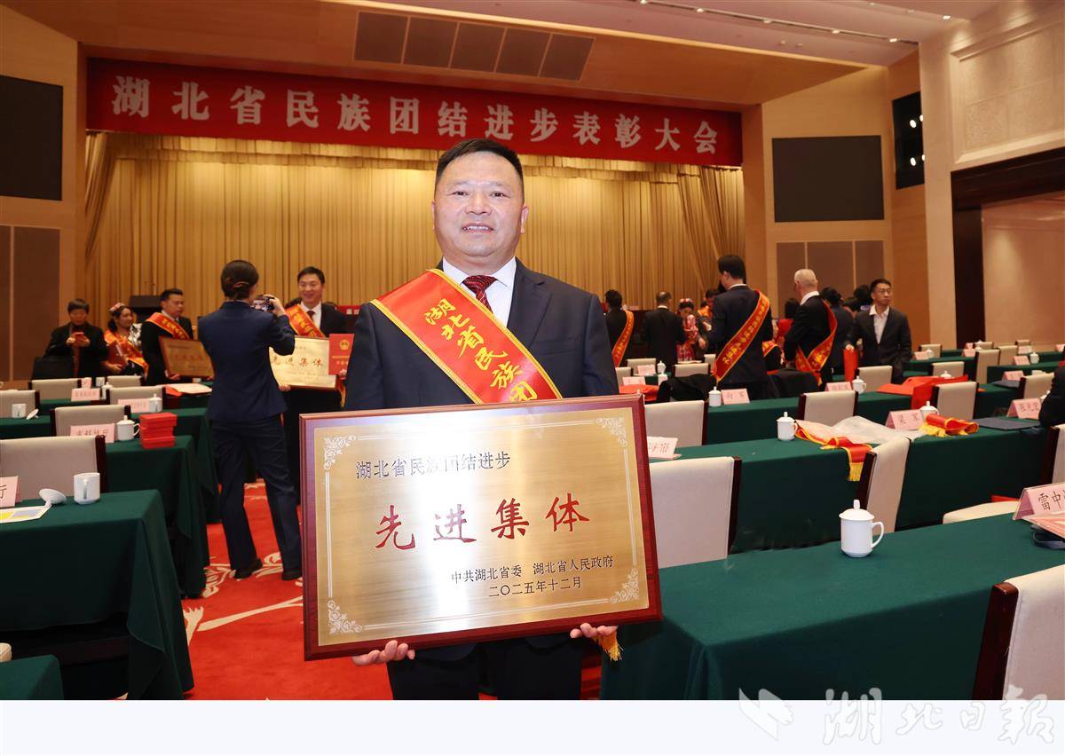 姜富贵作为代表接受“湖北省民族团结进步先进集体”表彰。