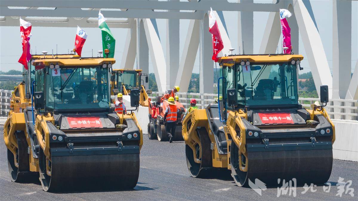 12月16日下午,最后一车沥青混合料摊铺碾压成型。(湖北日报全媒记者 陈迹 通讯员 沈正华 摄)