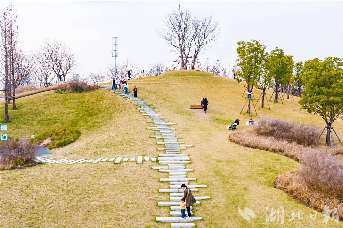 12月16日,位于武汉长江新区谌家矶片区的麓洲生态城麓客岛风景如画,不少市民带着孩子在此游玩,乐享亲子时光。(湖北日报全媒记者 任勇 通讯员 王谦 摄)