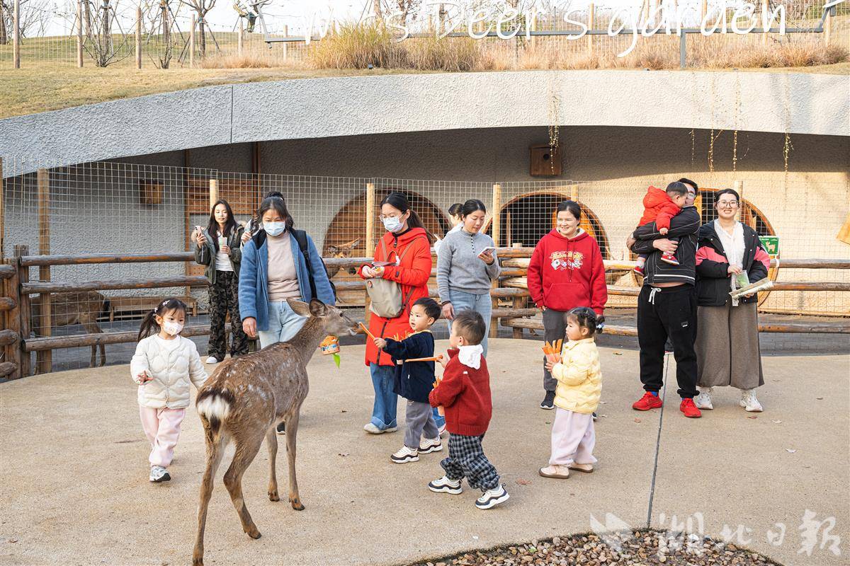 12月16日,小朋友们与小鹿近距离互动。(湖北日报全媒记者 任勇 通讯员 王谦 摄)
