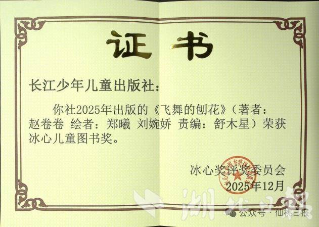 湖北日报讯(记者农新瑜、通讯员沈作)近日,2025年度冰心儿童图书奖揭晓,其中湖北省作协签约专业作家、武汉作协签约作家、汉阳区作协副主席赵卷卷凭借作品《飞舞的刨花》摘获该奖项。