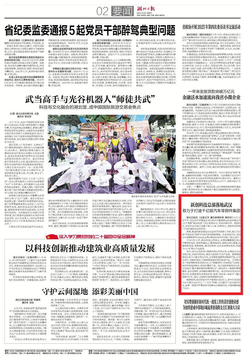 12月20日,湖北日报要闻版报道:跃创科技总部落地武汉 致力于打造千亿级汽车零部件集团