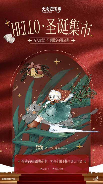 12月19日-12月21日最人气的【HELLO圣诞手帐市集】首入武汉,现场95家 人气手帐插画品牌集结,特邀插画师【吉昨仁】亲临签售互动,70家社团签绘互动,100种印章任性盖,2万多文创福利免费领。