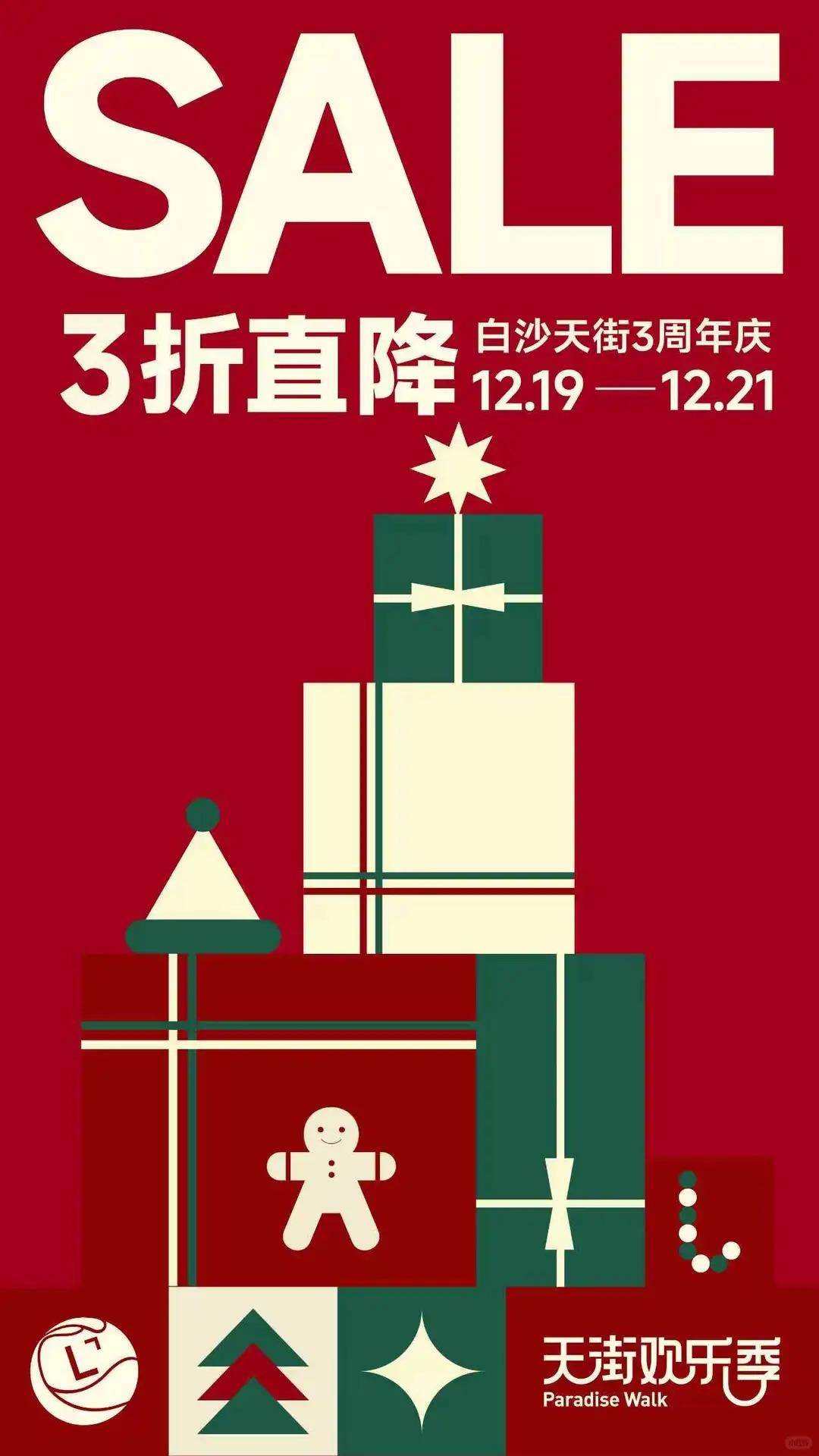 12月19-21日武汉白沙天街3周年庆欢乐开启,寻光而来!最美冰雪乐园、3大圣诞场景梦幻启幕,打造最浪漫的圣诞打卡地,年终超级折扣季-全场零售3折起,餐饮5折起,准备好和白沙天街来一场浪漫邂逅了吗?快来沉浸式感受这份专属的甜蜜与温暖。