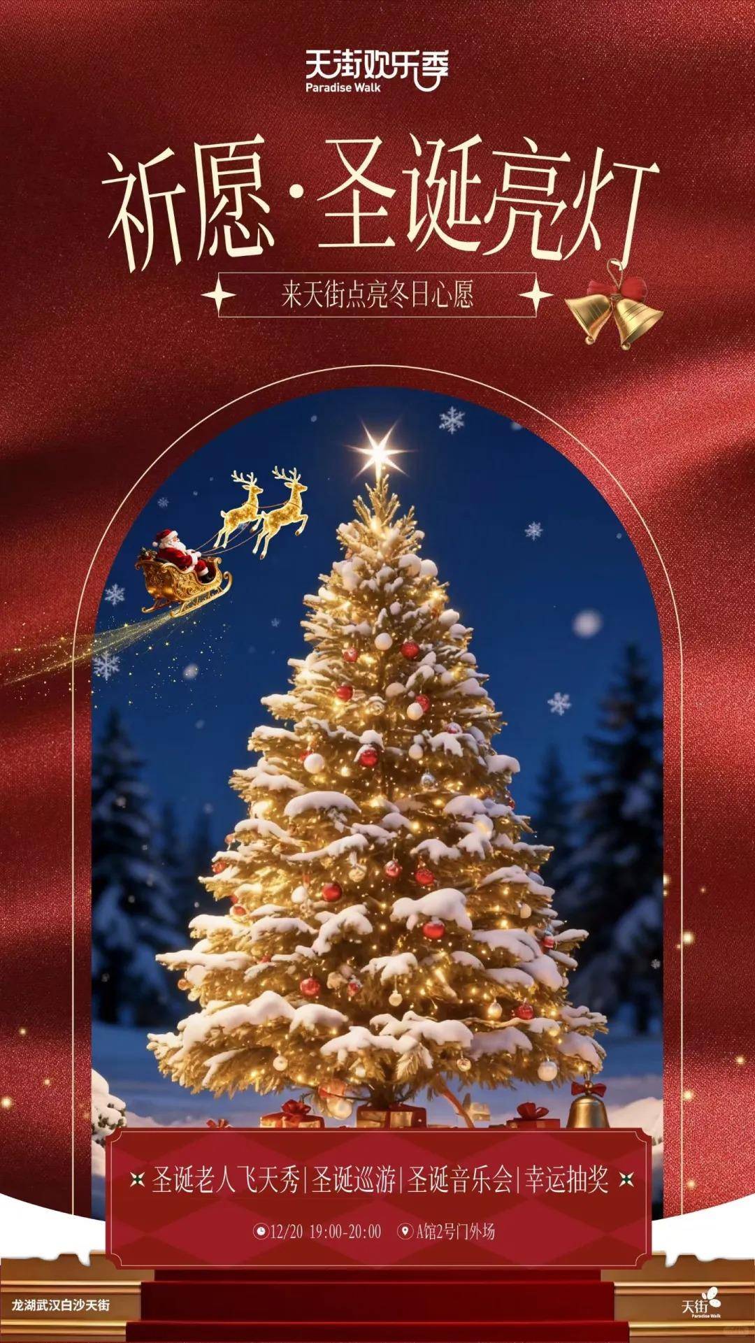 12月20日最浪漫的圣诞点亮仪式在龙湖武汉白沙天街举行,这是一场具仪式感圣诞亮灯,圣诞老人将承载着新年祈愿惊喜亮相,以别具新意从天而降的方式点亮璀璨灯火,传递浪漫祝福。